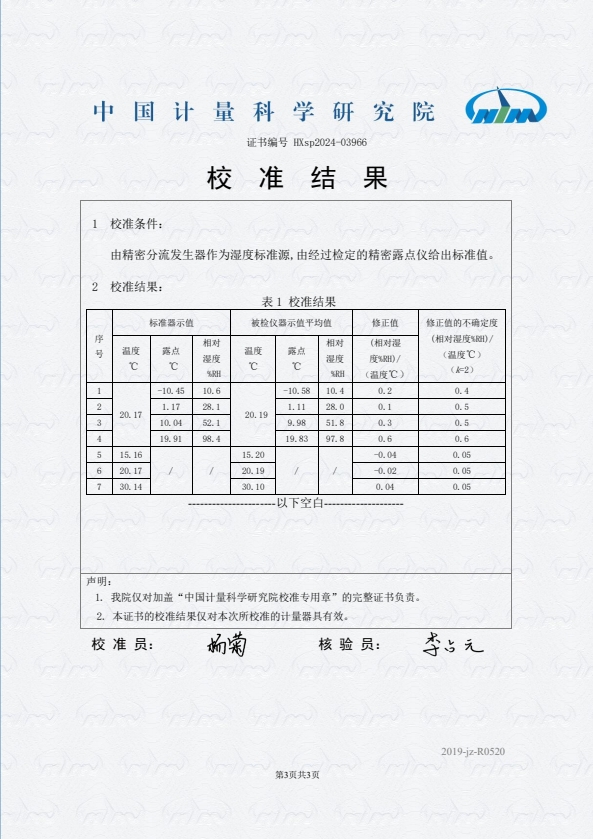 上一條:腔式黑體(50~500℃)校準(zhǔn)證書 | 下一條:超低溫面源黑體爐(-40-80℃)校準(zhǔn)證書 |