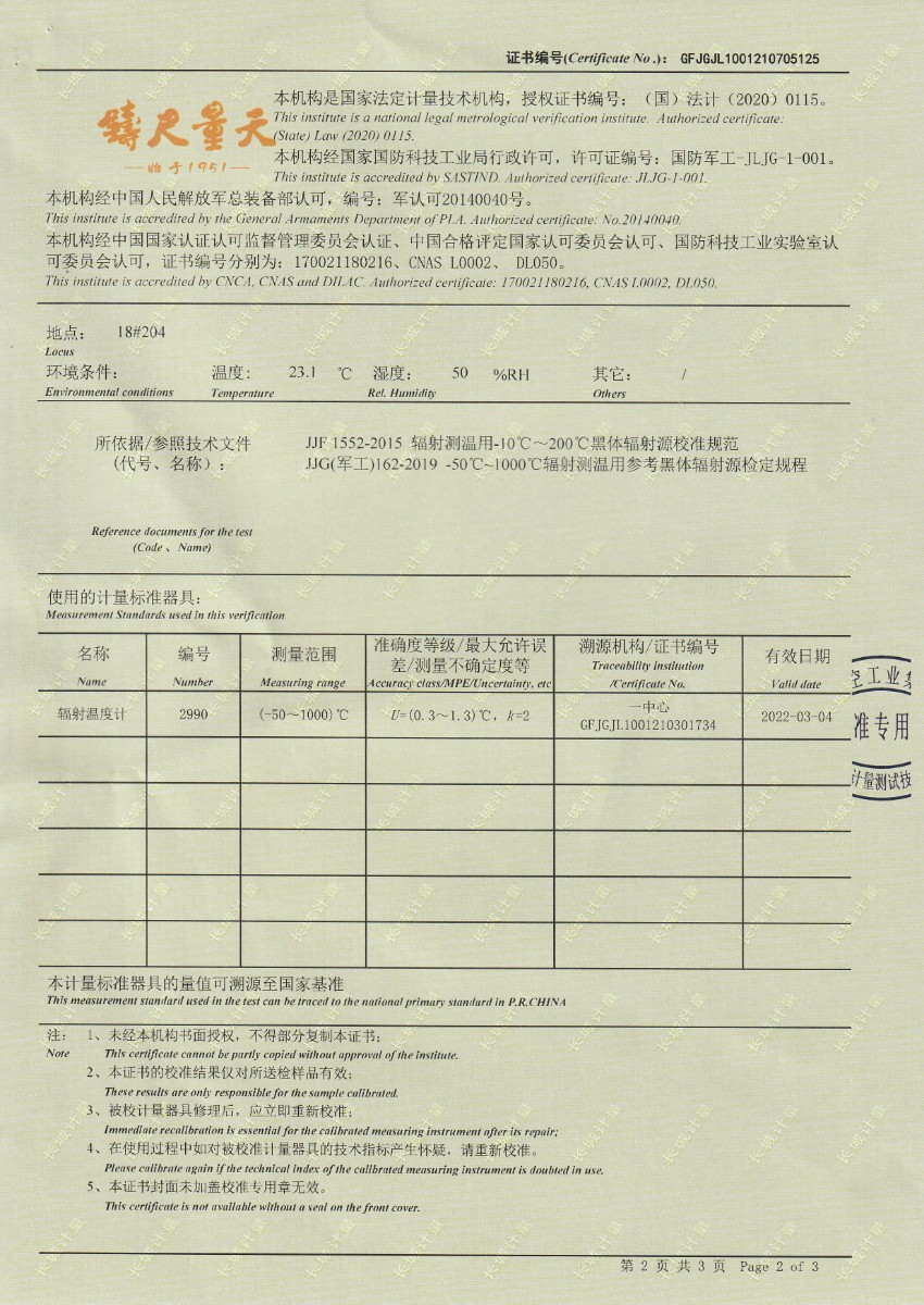 上一條:中國核工業(yè)二三建設有限公司太平嶺項目部-水三相點瓶下一條:超低溫面源黑體爐(-40-80℃)校準證書