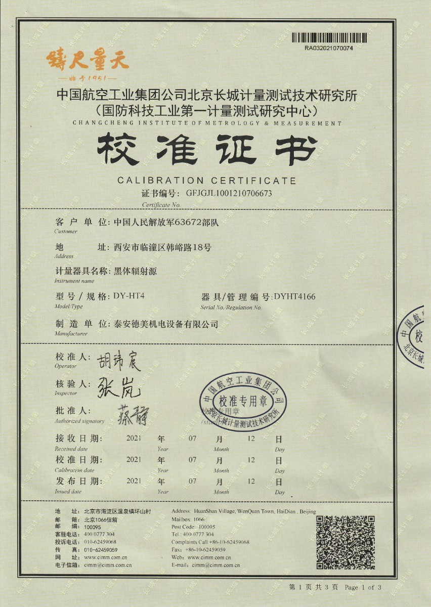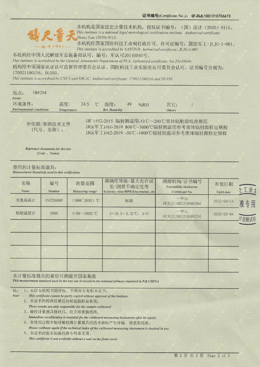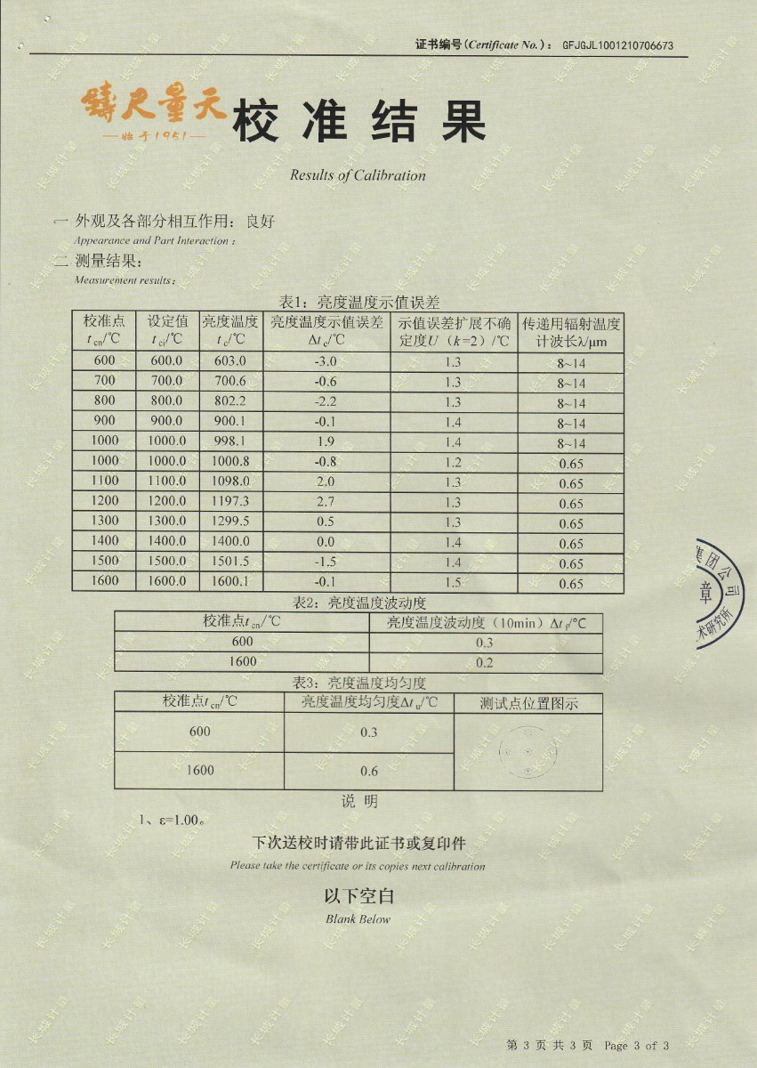 上一條:福建邁格林醫(yī)療科技有限公司-黑體輻射源 | 下一條:超低溫面源黑體爐(-40-80℃)校準(zhǔn)證書(shū) |