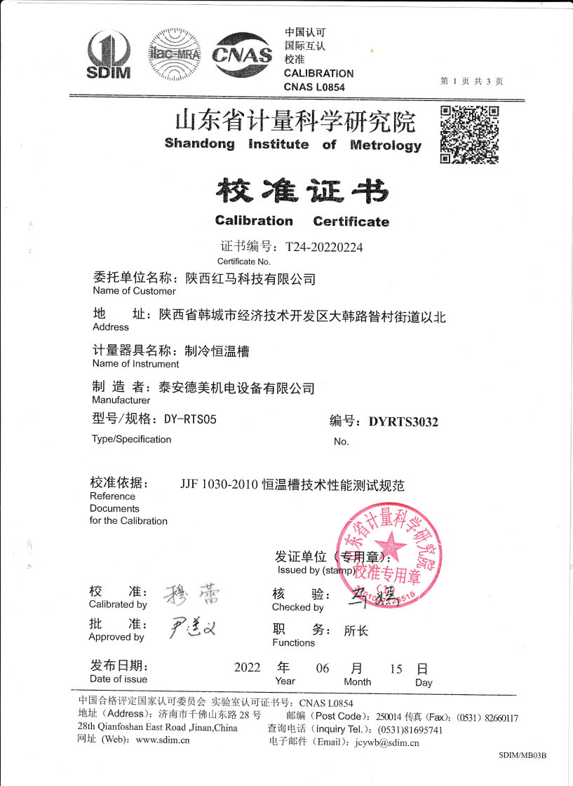 上一條:中睿(天津)檢驗(yàn)檢測(cè)有限公司-溫濕度檢定箱 | 下一條:超低溫面源黑體爐(-40-80℃)校準(zhǔn)證書 |