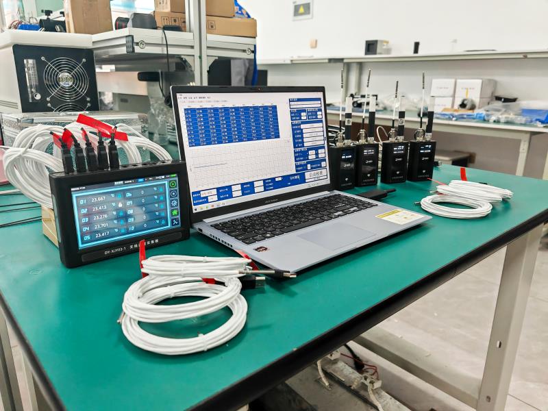 下圖(以DY-XJY03-1型號為例)所示①-⑩通道為可選擇傳感器溫度通道,可選擇類型有(熱電阻(PT100),熱電偶(K,E,J,T,B,N,R,S)),可工作在熱電阻模式或熱電偶模式下,通過無線傳輸把采集到的10通道溫度數(shù)據(jù)發(fā)送到接收器,10通道溫度采集主機還具有2路RS485、1路type-C轉(zhuǎn)串口通訊功能,可以跟具有標準modbus-RTU通訊功能的上位機或觸摸屏設(shè)備通訊,實現(xiàn)現(xiàn)場數(shù)據(jù)采集功能,從而具有更多的應(yīng)用場合。