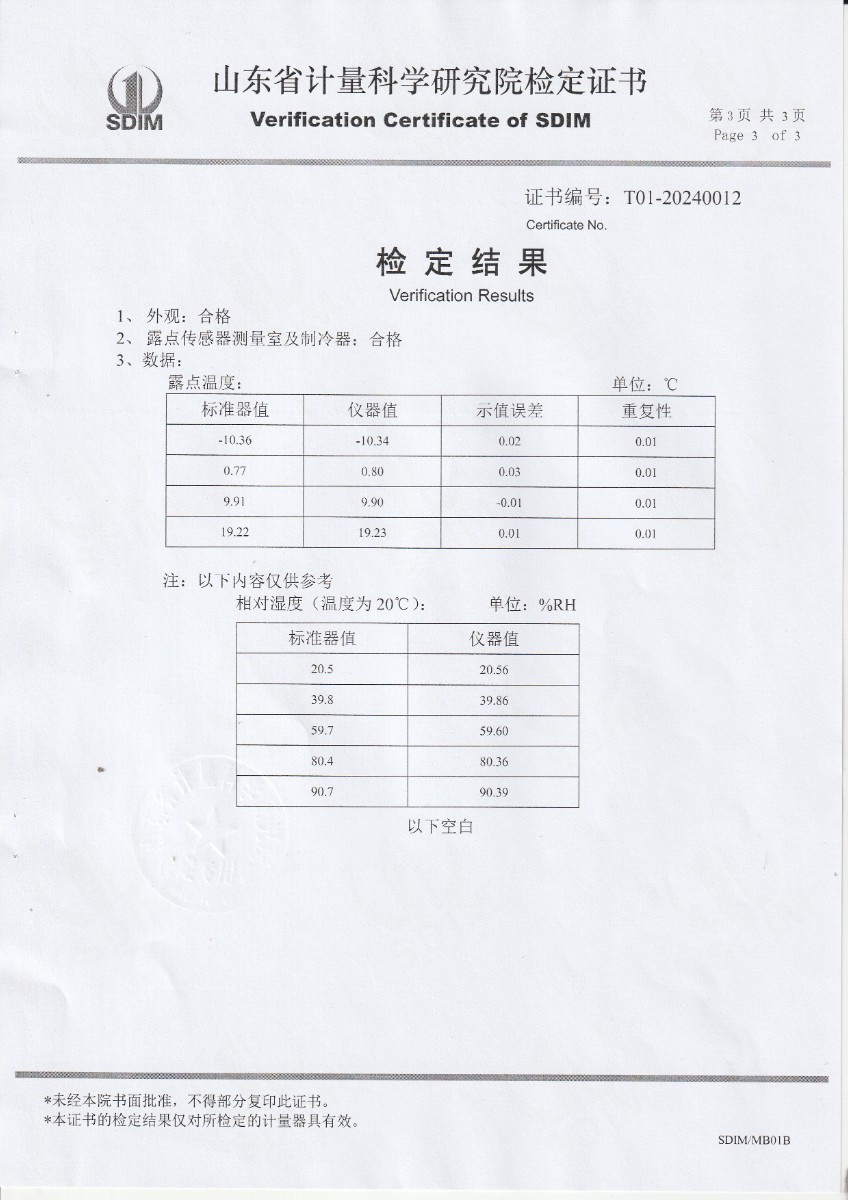 冷鏡式露點儀檢定證書 2024-1-31 本文被閱讀 8293 次