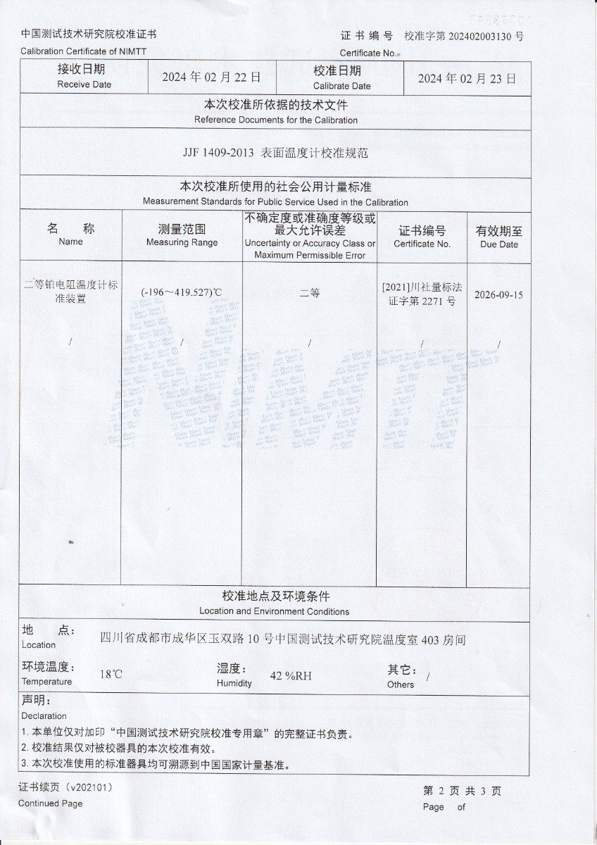 上一條:表面溫度計(jì)校準(zhǔn)裝置下一條:超低溫面源黑體爐(-40-80℃)校準(zhǔn)證書