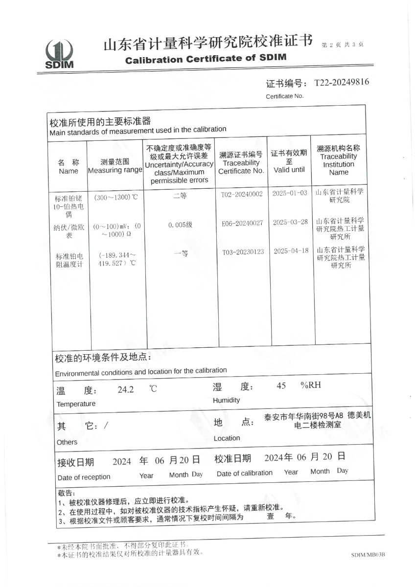 | 上一條:廉金屬熱電偶檢定爐(300~1200℃)校準(zhǔn)證書 | 下一條:便攜式干體爐(-30-150℃)校準(zhǔn)證書 |
