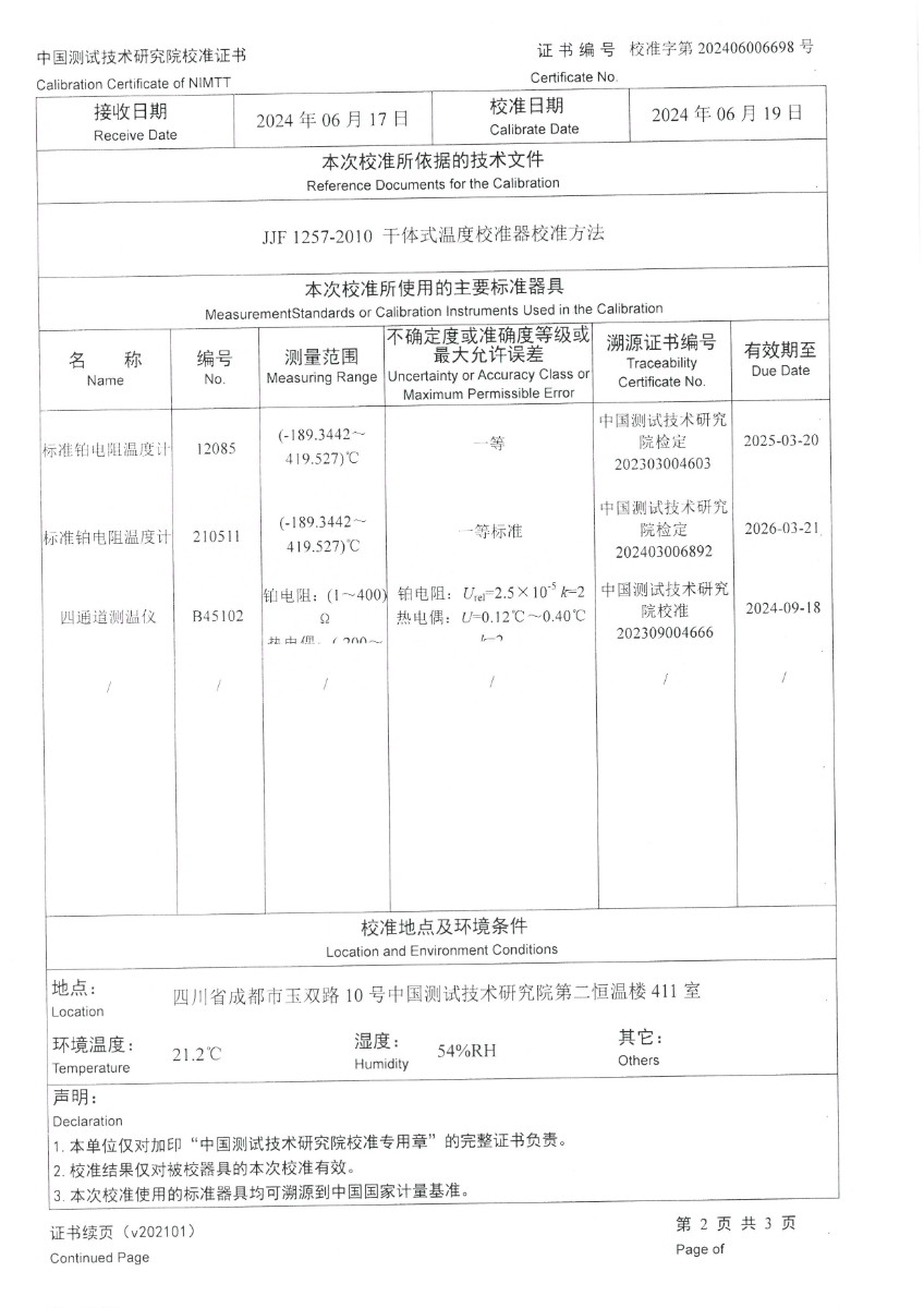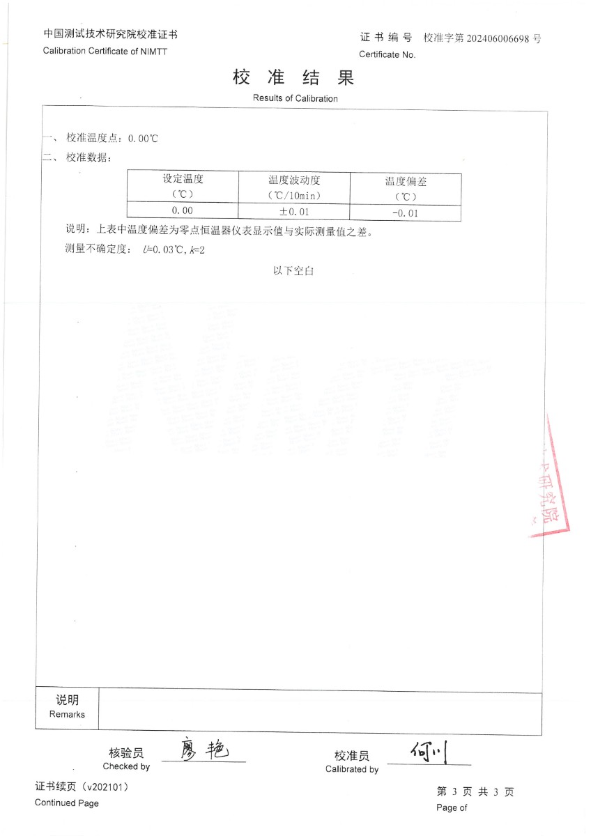 零點恒溫器校準證書 2024-6-27 本文被閱讀 5795 次