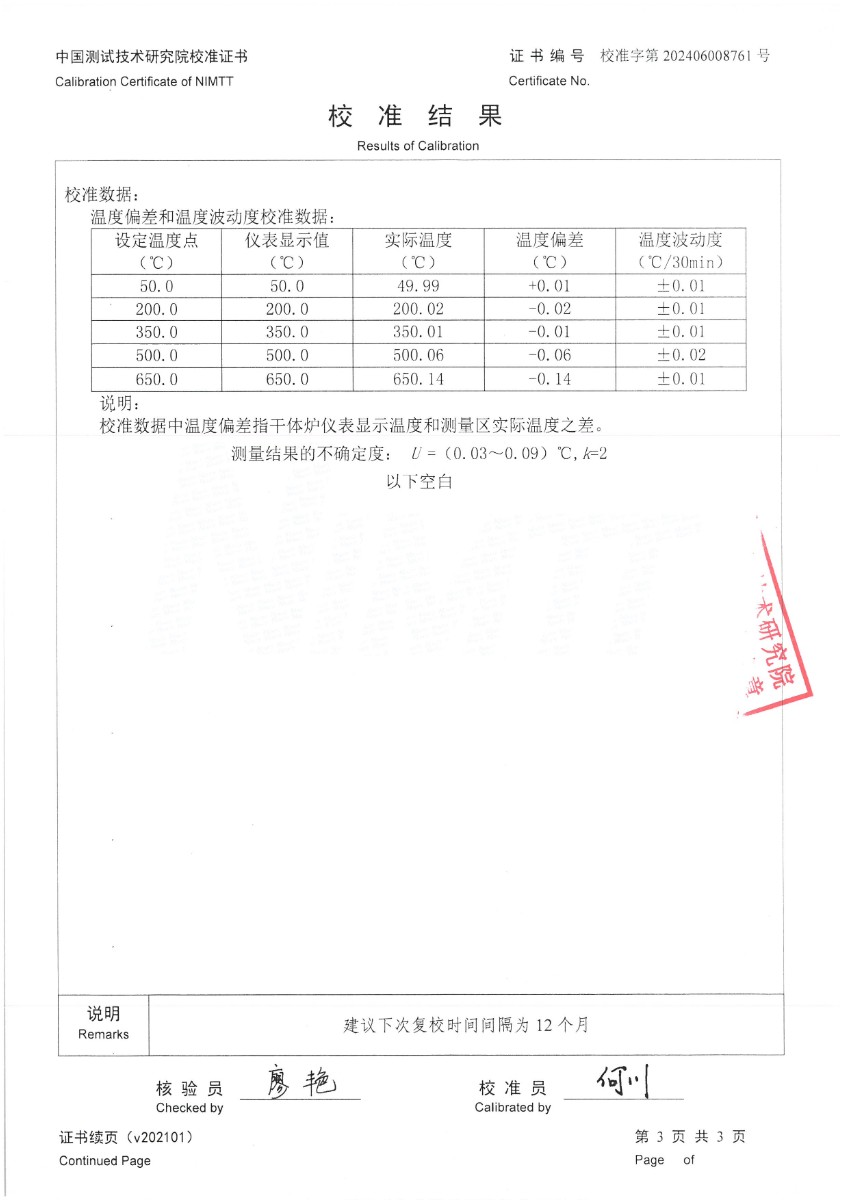 | 上一條:水三相點(diǎn)瓶校準(zhǔn)證書 | 下一條:便攜式干體爐(-30-150℃)校準(zhǔn)證書 |