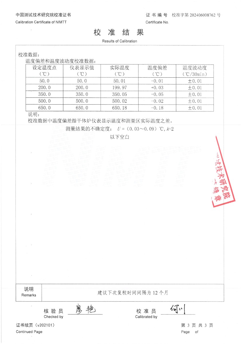 | 上一條:中溫干體爐295(50~650℃)校準(zhǔn)證書 | 下一條:便攜式干體爐(-30-150℃)校準(zhǔn)證書 |