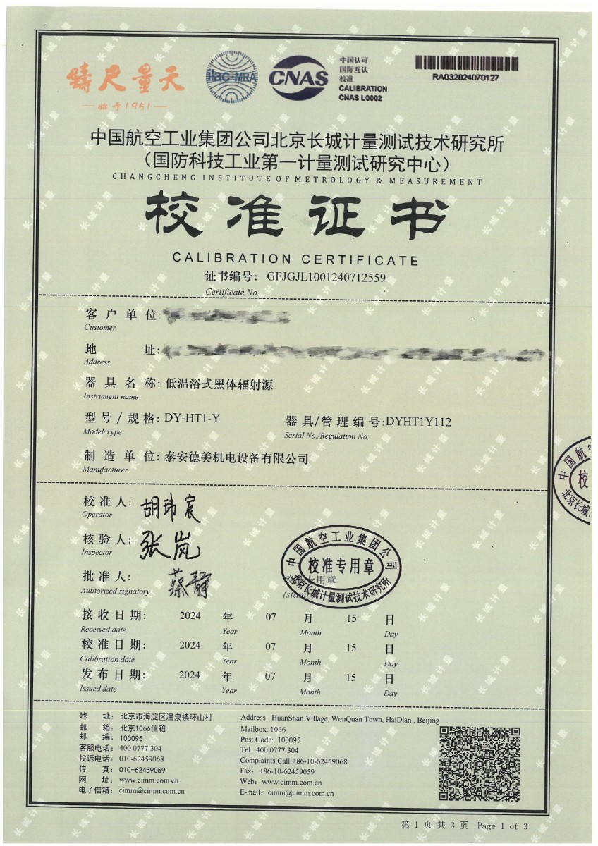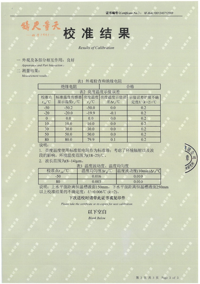 上一條:標(biāo)準(zhǔn)水銀溫度計(jì)校準(zhǔn)證書 | 下一條:超低溫面源黑體爐(-40-80℃)校準(zhǔn)證書 |