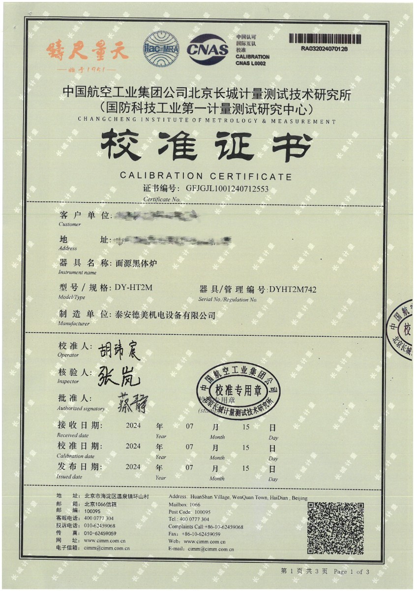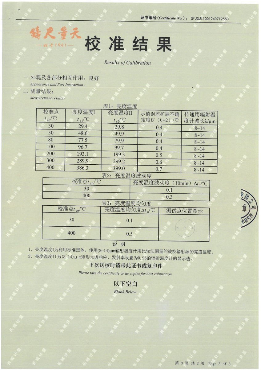 上一條:低溫浴式(-50~80℃)校準(zhǔn)證書(shū) | 下一條:超低溫面源黑體爐(-40-80℃)校準(zhǔn)證書(shū) |