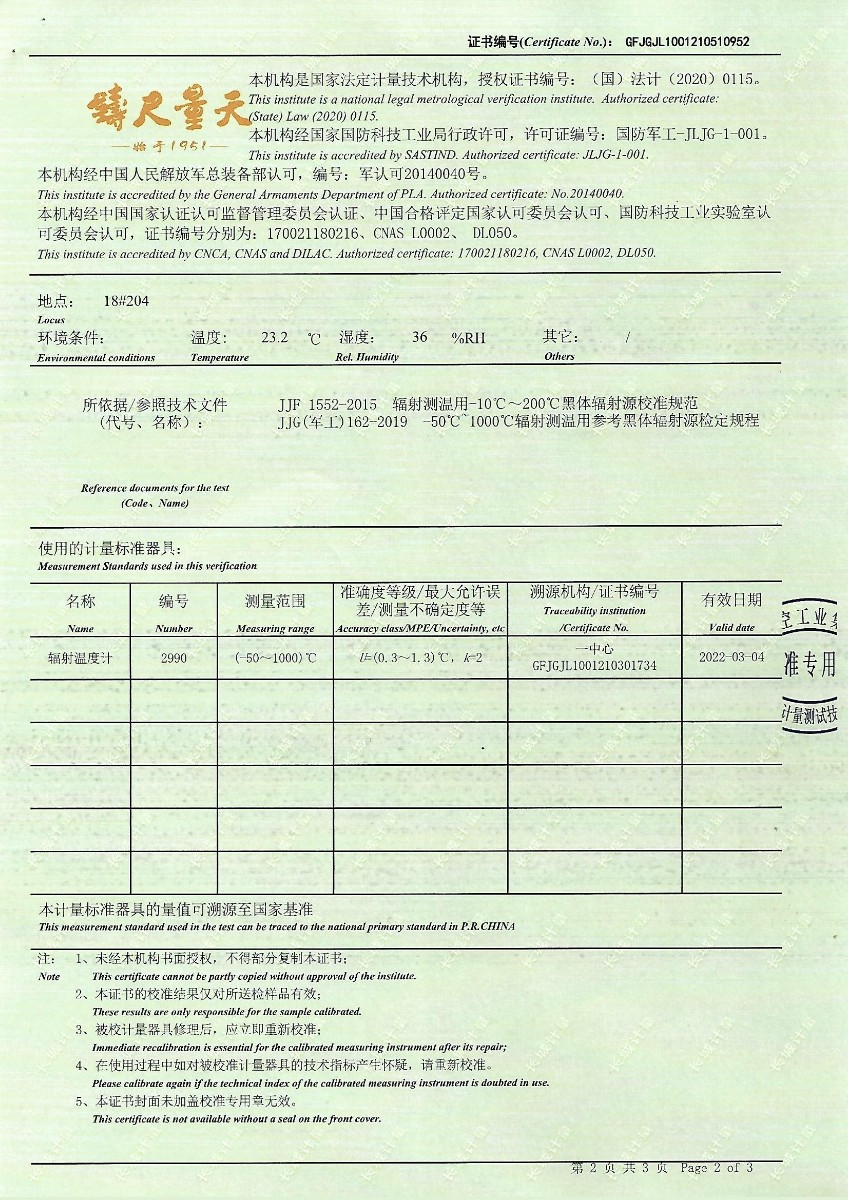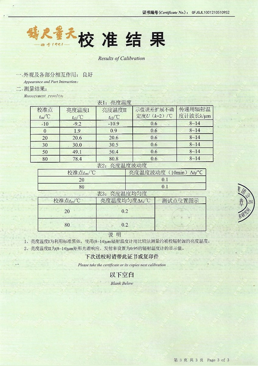 上一條:大秦鐵路股份有限公司侯馬北車(chē)輛段-黑體輻射源 | 下一條:便攜式干體爐(-30-150℃)校準(zhǔn)證書(shū) |