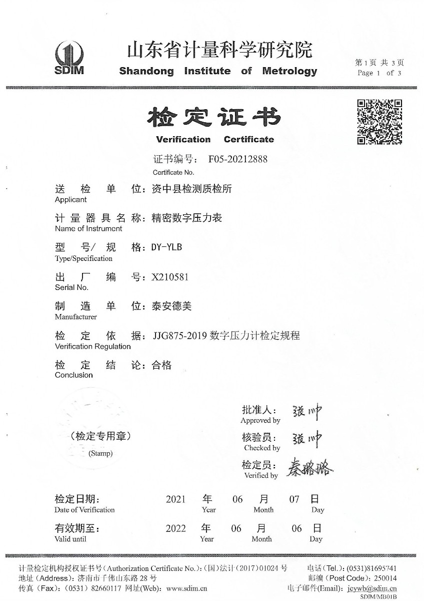 資中縣檢測質(zhì)檢所-精密數(shù)字壓力表 2021-6-10 本文被閱讀 15664 次
