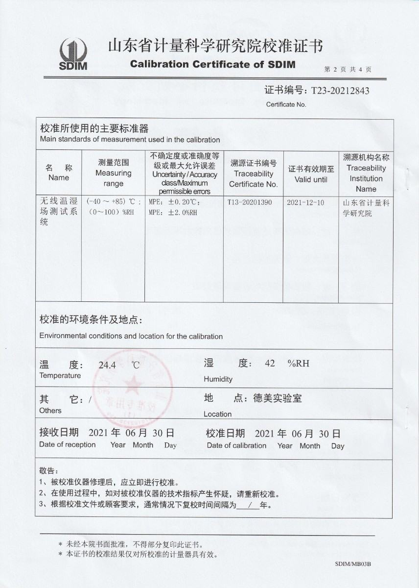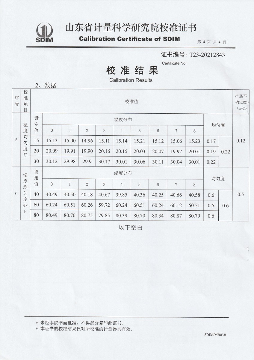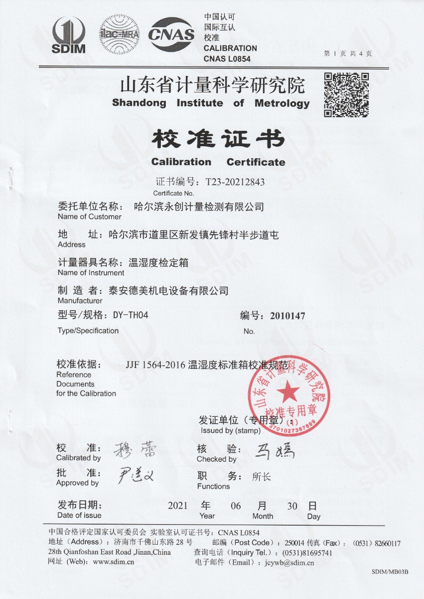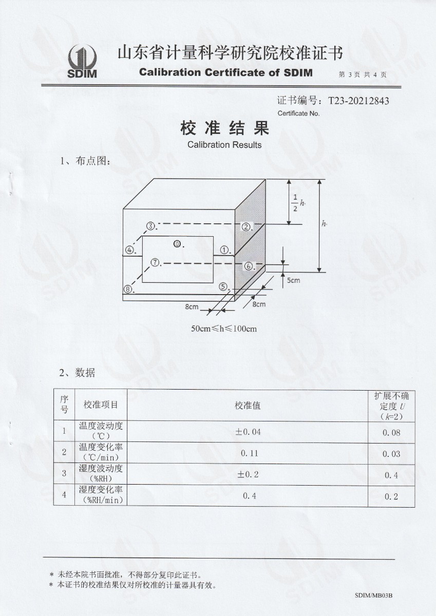 上一條:廣東省連平縣質(zhì)量技術(shù)監(jiān)督檢測所-溫濕度檢定箱 | 下一條:超低溫面源黑體爐(-40-80℃)校準(zhǔn)證書 |