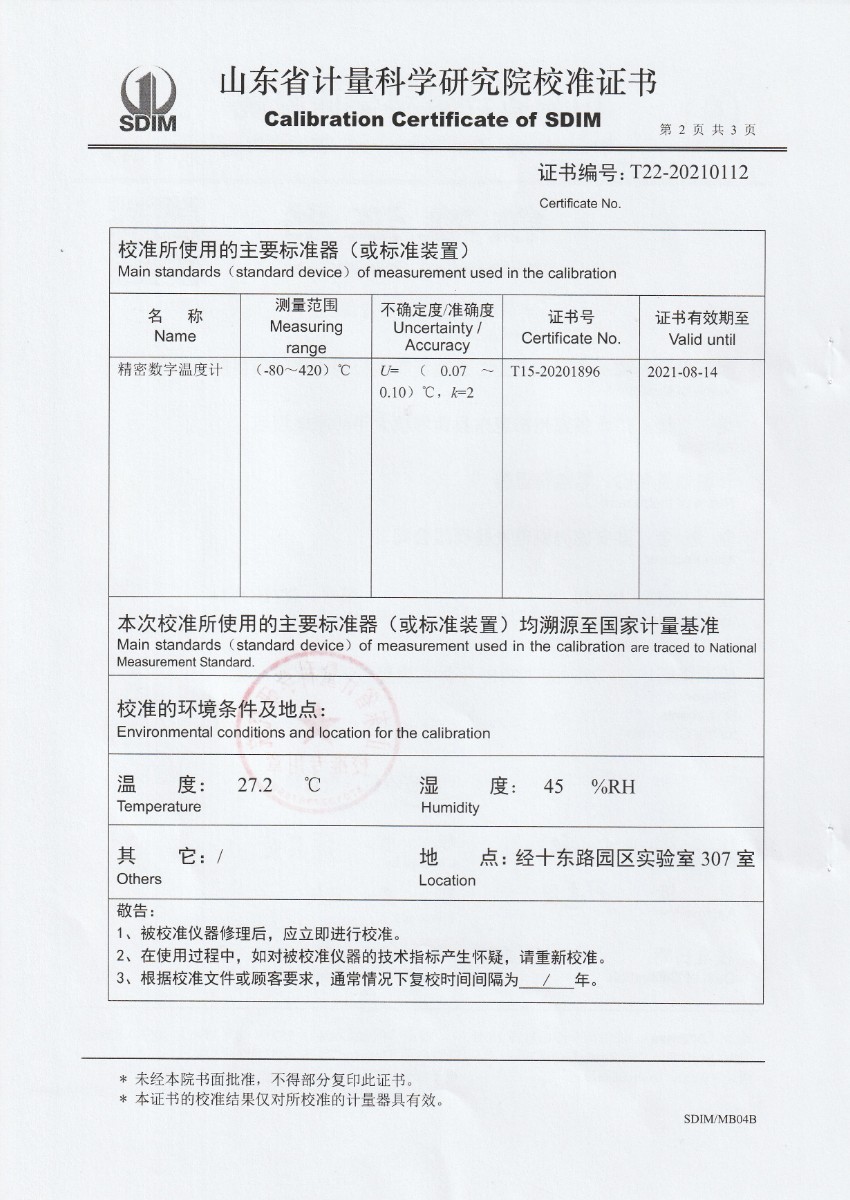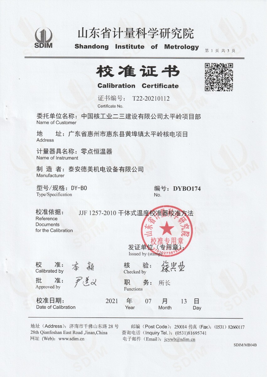 上一條:中國(guó)核工業(yè)二三建設(shè)有限公司太平嶺項(xiàng)目部-標(biāo)準(zhǔn)鉑銠10-鉑熱電偶 | 下一條:超低溫面源黑體爐(-40-80℃)校準(zhǔn)證書 |