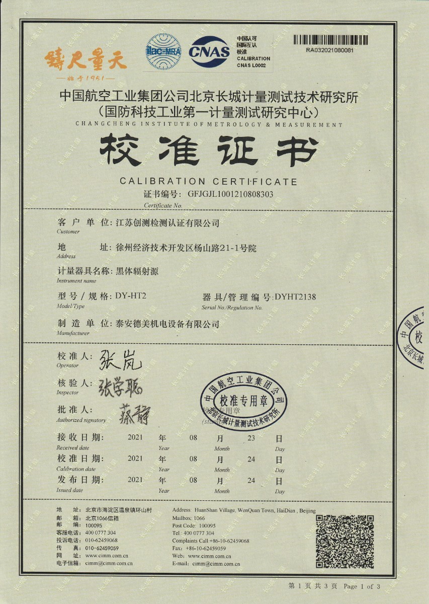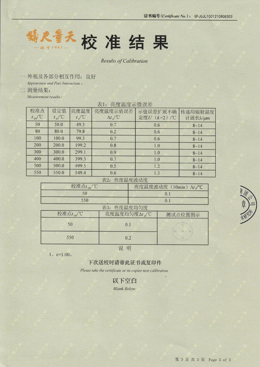 上一條:大秦鐵路股份有限公司太原車輛段-黑體爐 | 下一條:超低溫面源黑體爐(-40-80℃)校準(zhǔn)證書 |