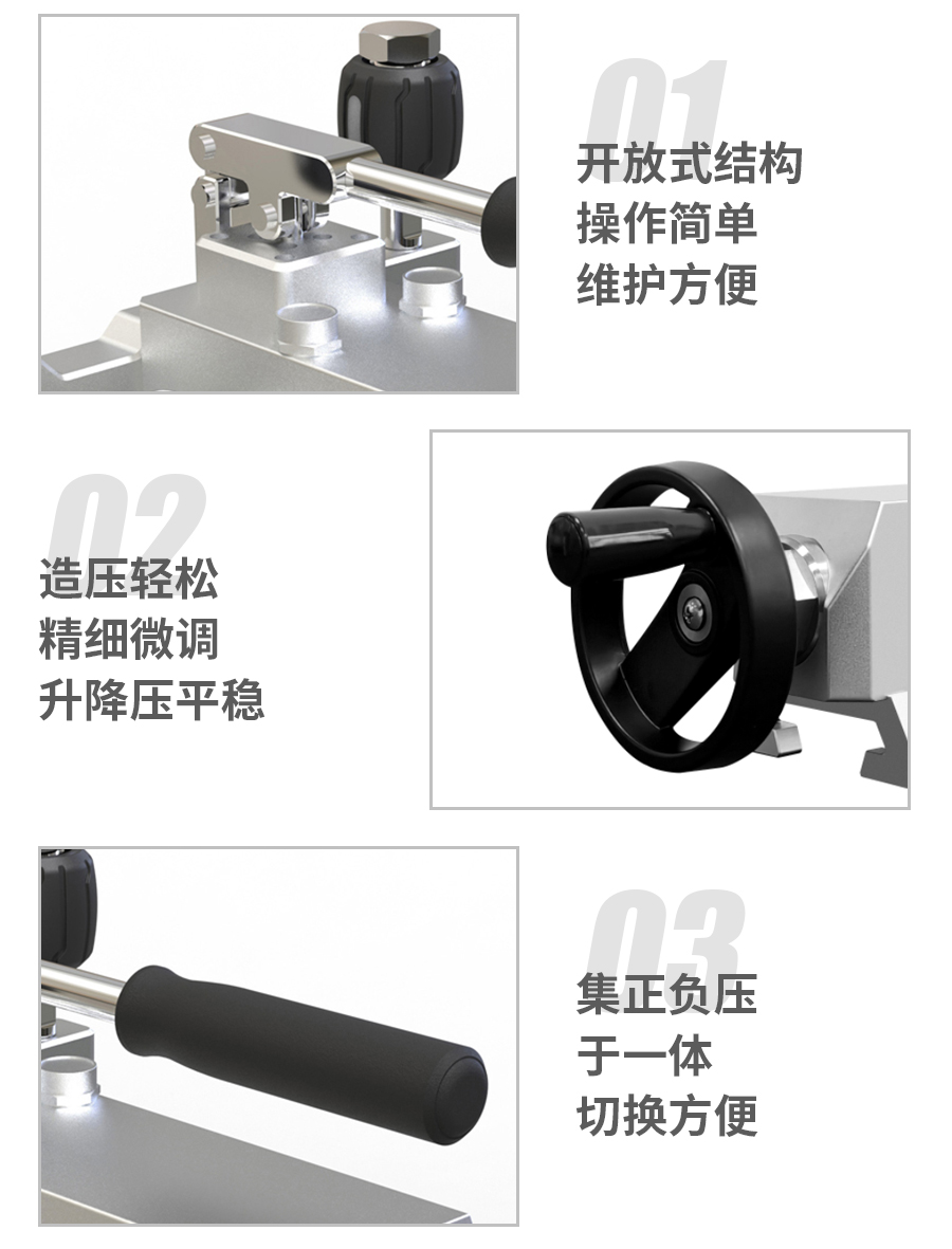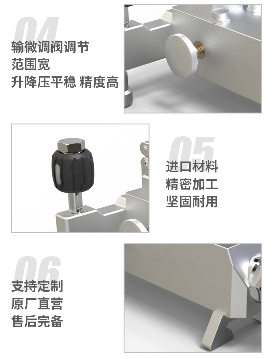 ◆螺旋式升降壓,升降壓平穩(wěn),回程檢定易操作;