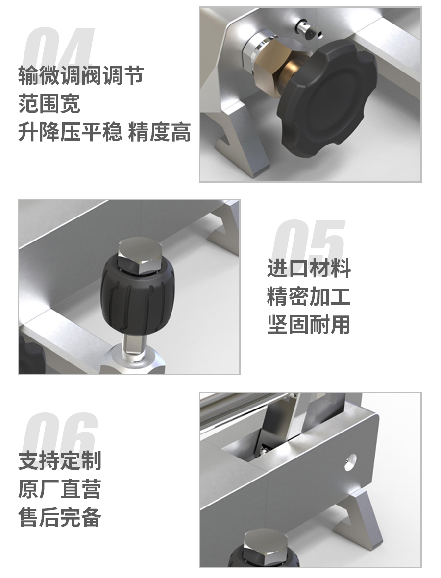 DY-YLM14高壓氣壓泵(-0.095~14)MPa高壓氣壓泵采用透明開放式設(shè)計(jì),結(jié)構(gòu)簡單、可靠性高、操作維護(hù)方便、不易泄漏、升降壓平穩(wěn),回程檢定易操作。材料采用鋁合金,質(zhì)量輕,便于攜帶,可適用于現(xiàn)場(chǎng)和實(shí)驗(yàn)室。廣泛應(yīng)用于校驗(yàn)各種壓力表、壓力變送器、壓力開關(guān)、壓力傳感器等工業(yè)過程儀表。