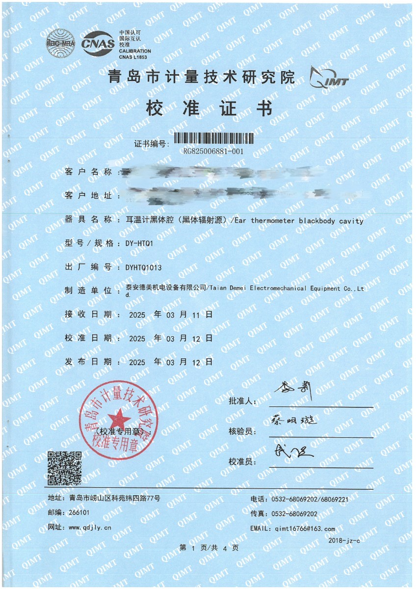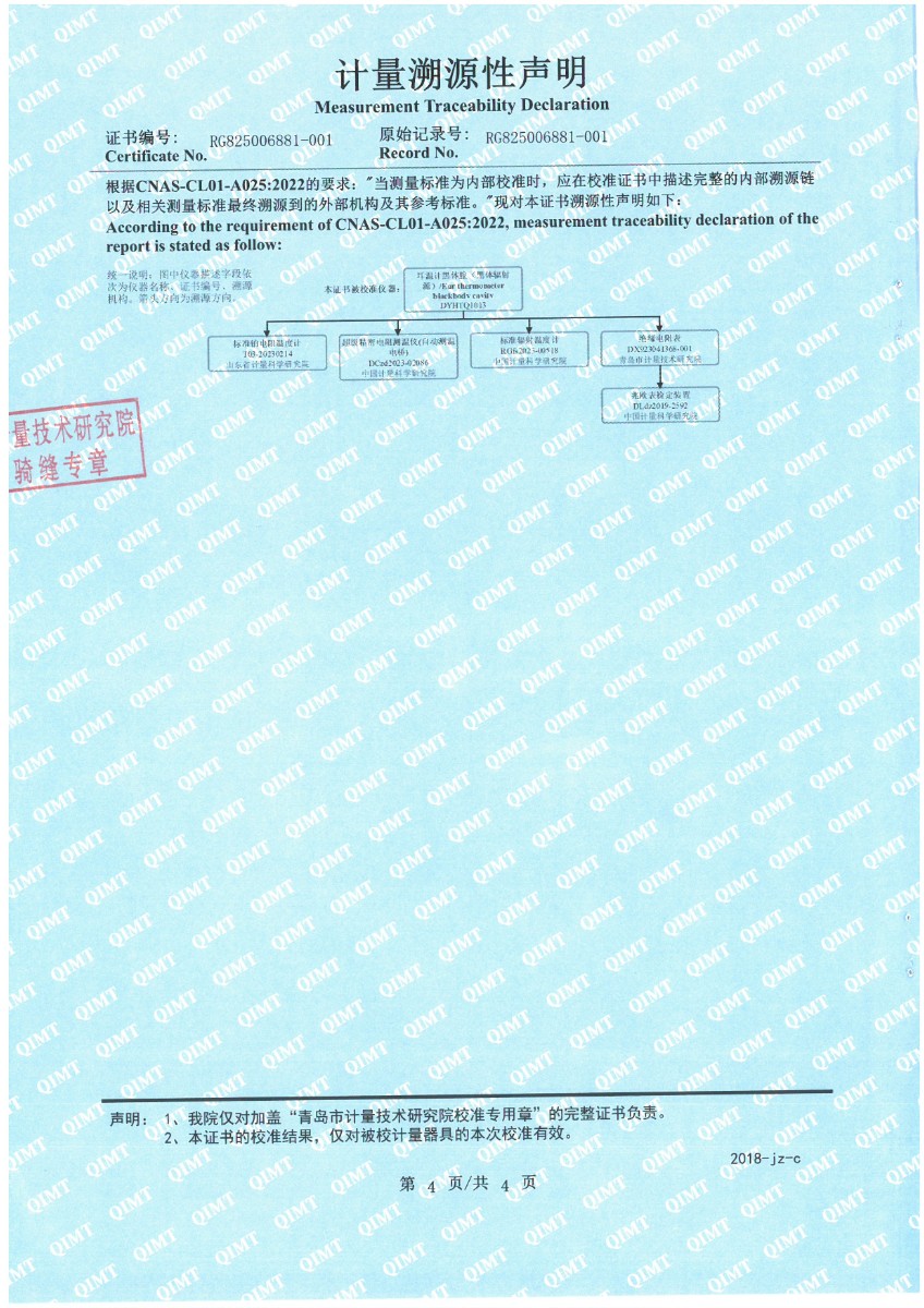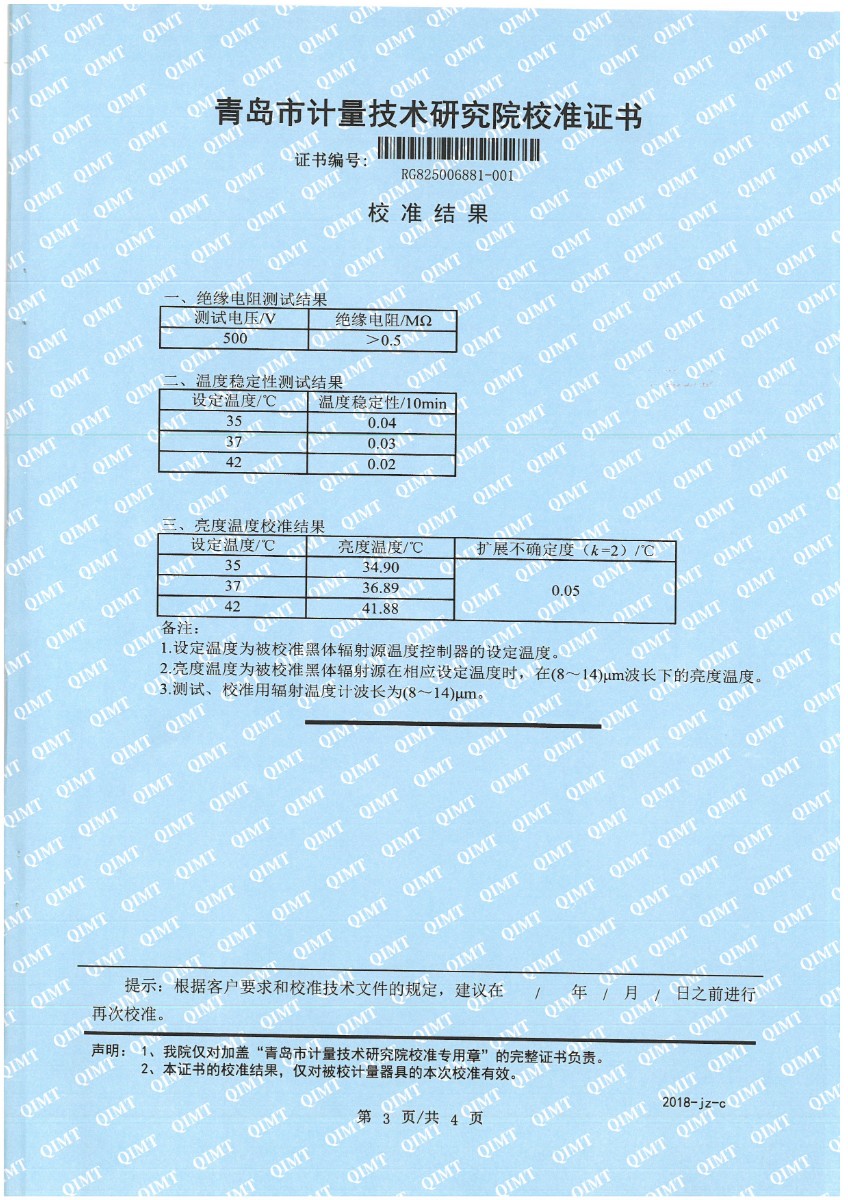 上一條:面源黑體爐(室溫+5-500℃)校準(zhǔn)證書(shū) | 下一條:超低溫面源黑體爐(-40-80℃)校準(zhǔn)證書(shū) |