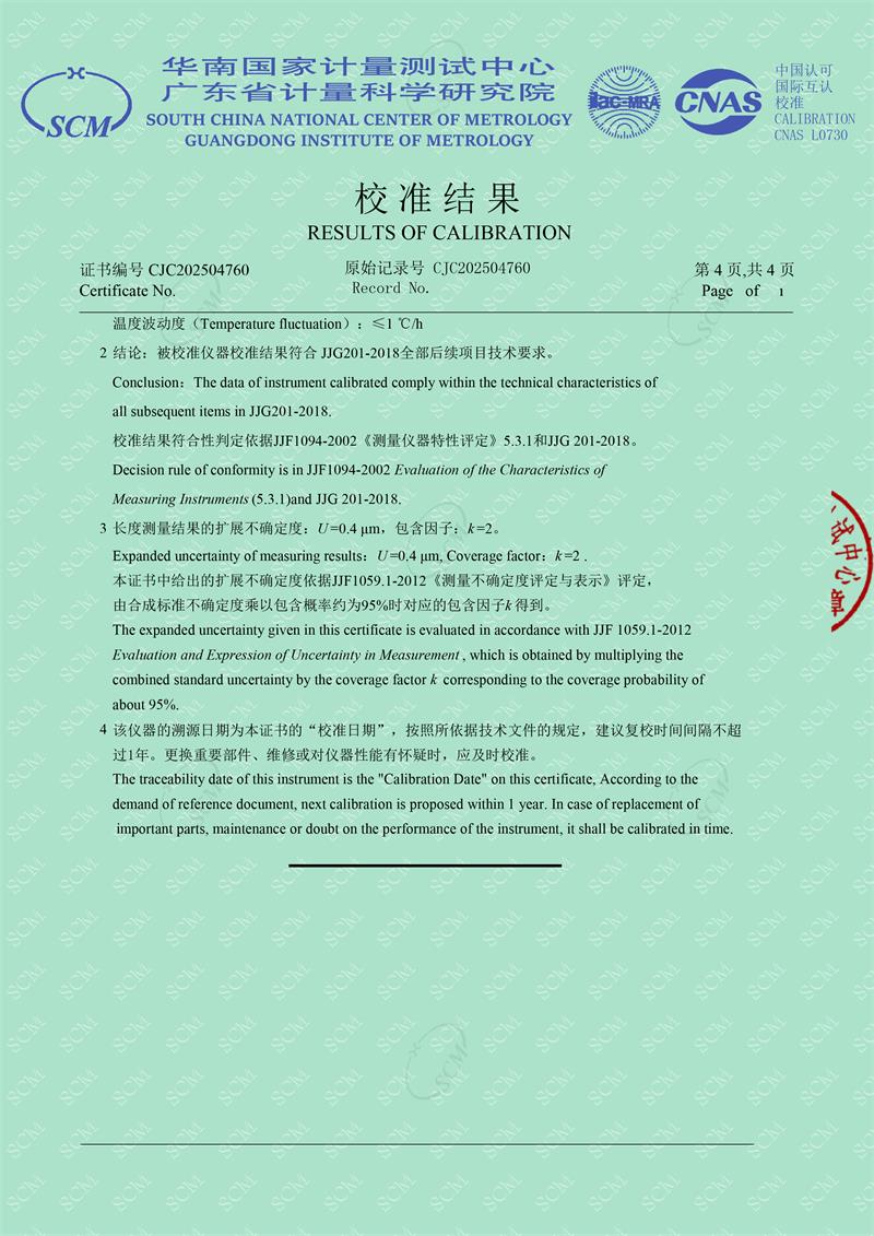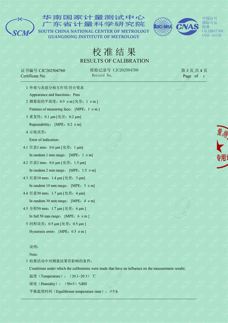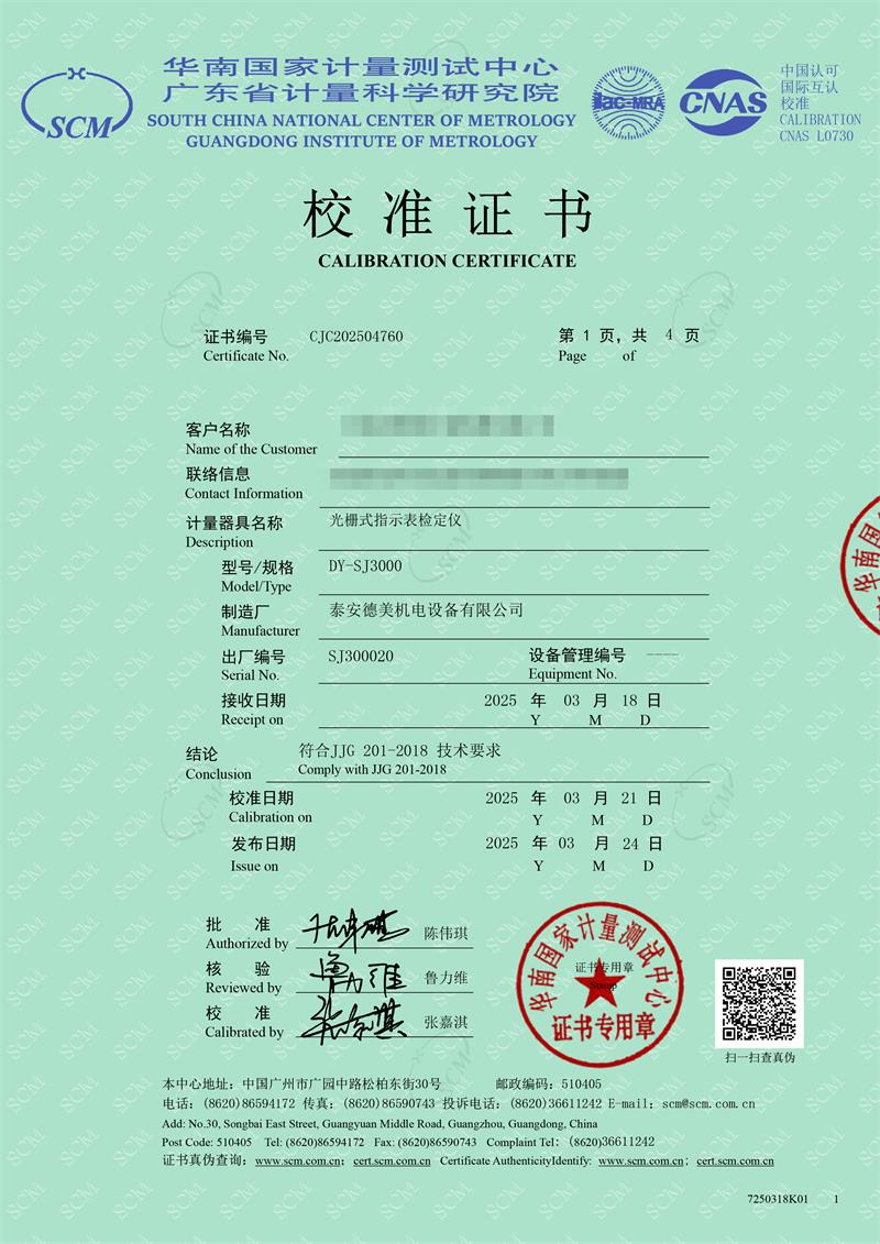 光柵式指示表檢定儀校準(zhǔn)證書