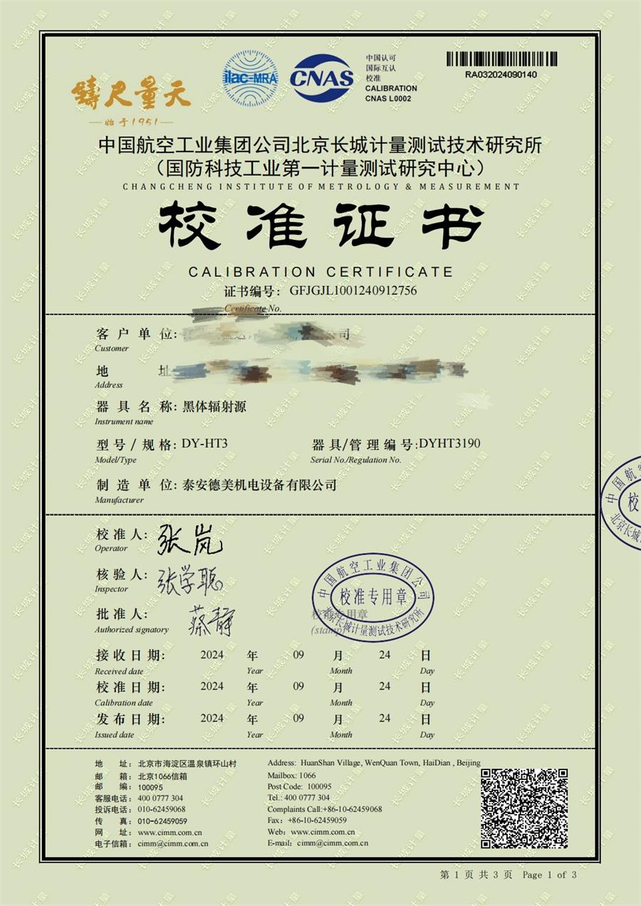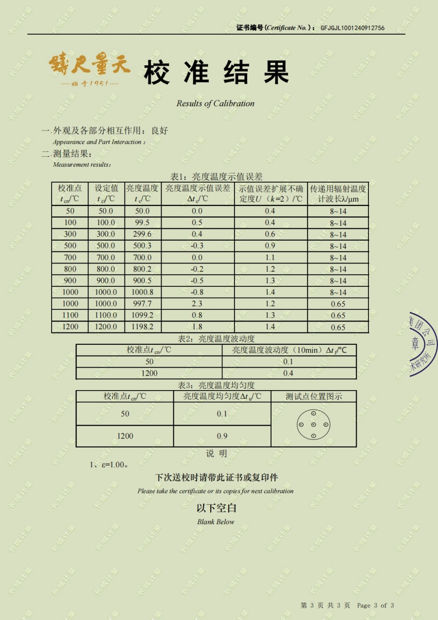 上一條:中溫黑體爐(50-500℃)校準(zhǔn)證書 | 下一條:超低溫面源黑體爐(-40-80℃)校準(zhǔn)證書 |