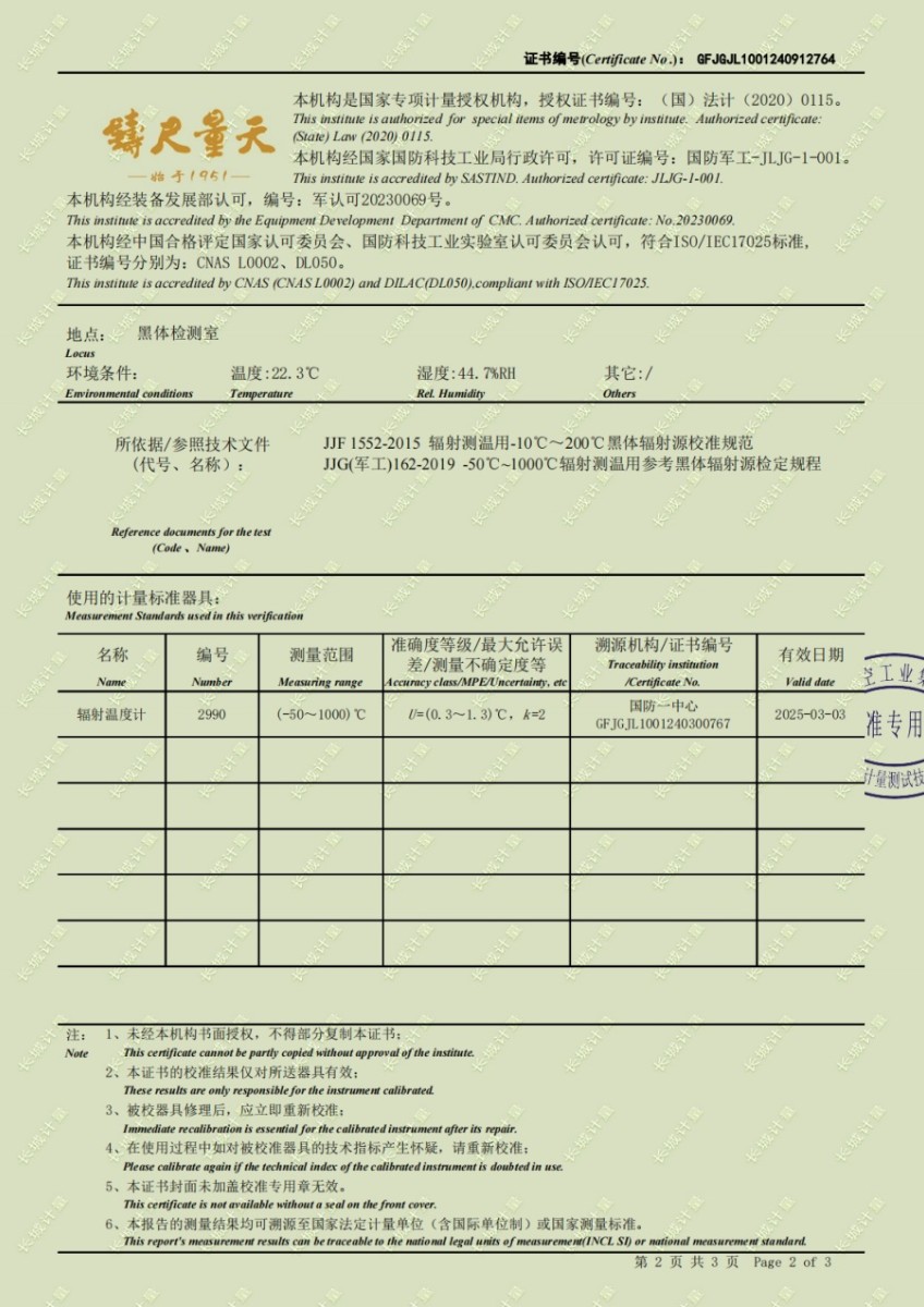 上一條:黑體輻射源(50-700℃)校準(zhǔn)證書 | 下一條:超低溫面源黑體爐(-40-80℃)校準(zhǔn)證書 |