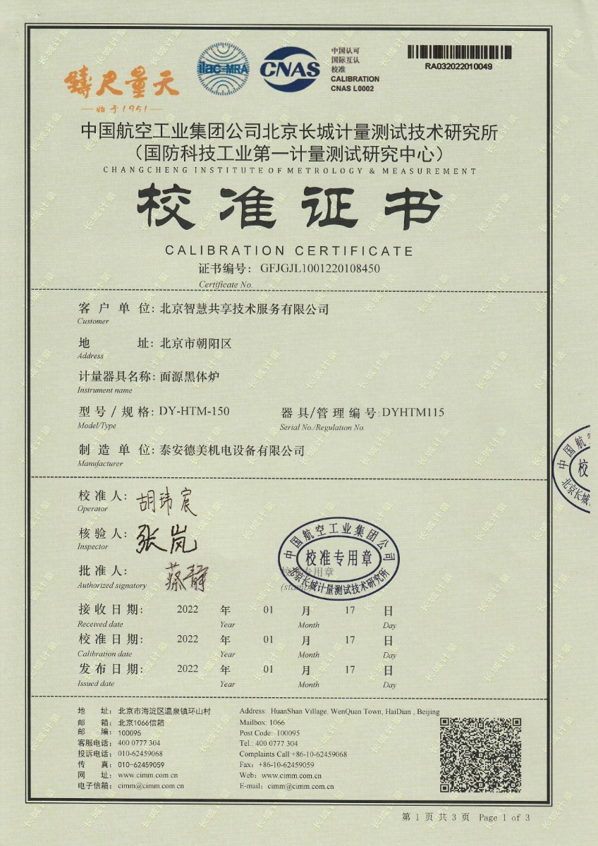 上一條:華道(上海)生物醫(yī)藥有限公司-制冷恒溫槽 | 下一條:超低溫面源黑體爐(-40-80℃)校準(zhǔn)證書(shū) |