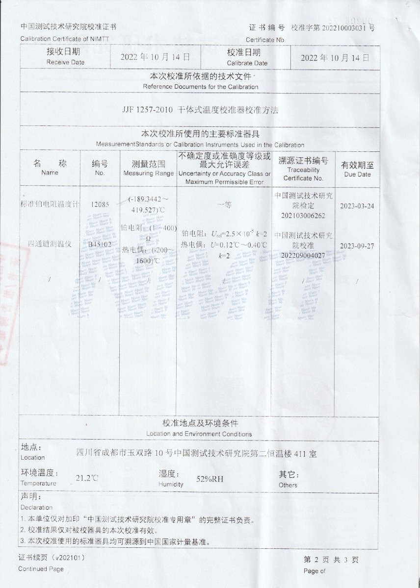 上一條:吉林省安全生產(chǎn)檢測檢驗股份有限公司-冷鏡式露點儀檢定證書 | 下一條:便攜式干體爐(-30-150℃)校準(zhǔn)證書 |