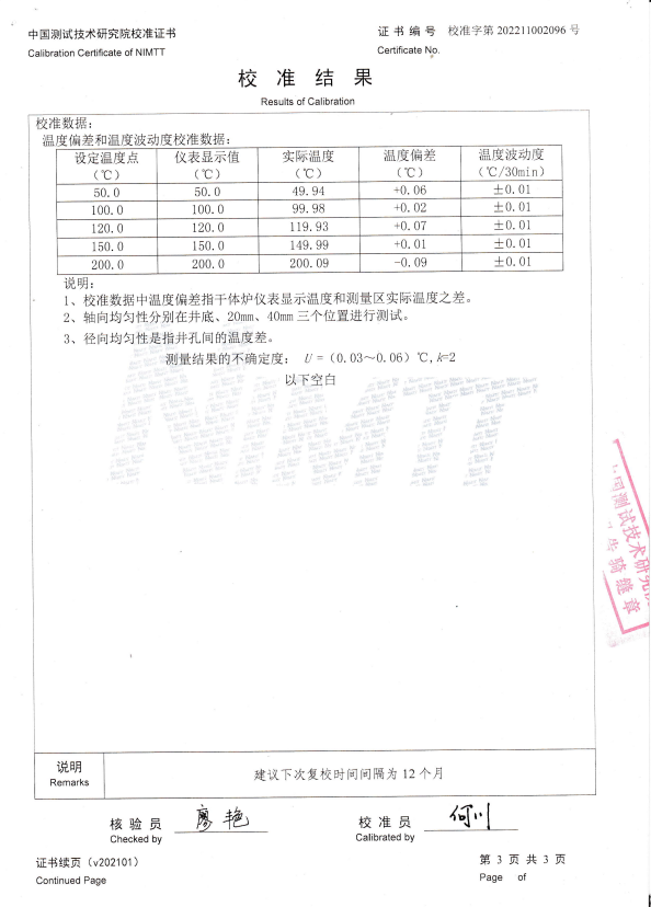 上一條:長沙百川超硬材料工具有限公司-熱電偶檢定爐 | 下一條:超低溫面源黑體爐(-40-80℃)校準(zhǔn)證書 |