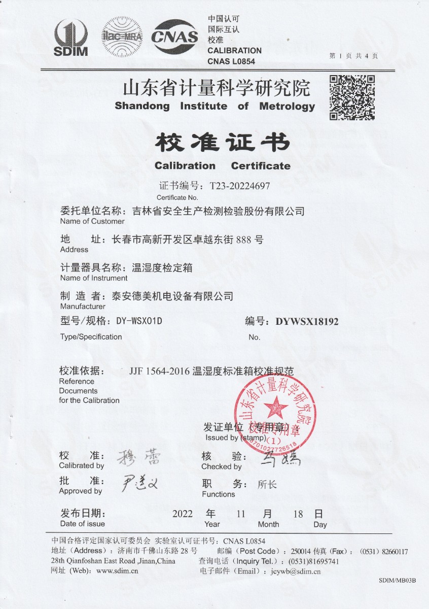 上一條:海安橡膠集團股份有限公司 干體爐 校準(zhǔn)證書 | 下一條:超低溫面源黑體爐(-40-80℃)校準(zhǔn)證書 |