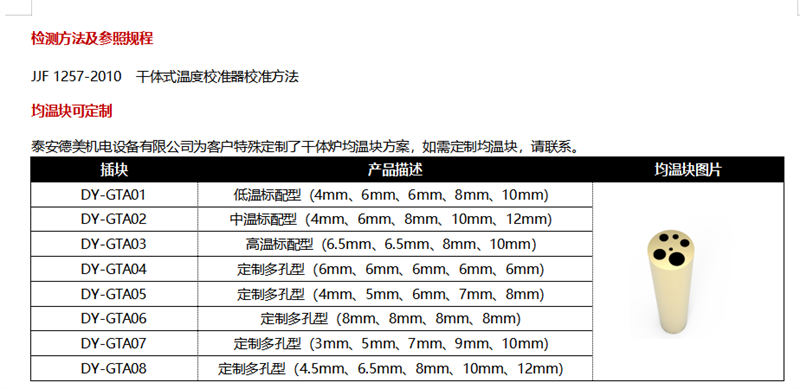 通過(guò)干體爐可以方便地校準(zhǔn)溫度傳感器、水銀溫度計(jì)、膨脹式溫度計(jì)、熱電偶、熱電阻、等溫度傳感器。