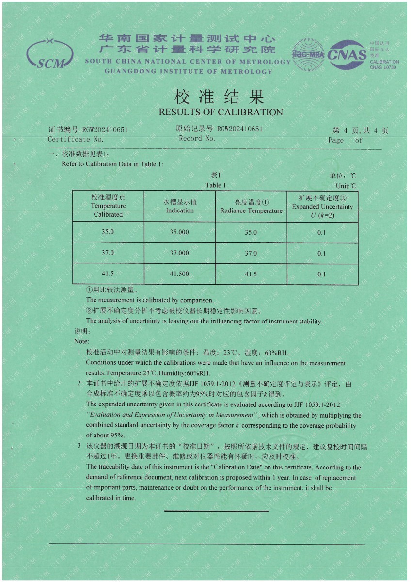 上一條:額溫空腔(黑體輻射源)校準(zhǔn)證書(shū) | 下一條:超低溫面源黑體爐(-40-80℃)校準(zhǔn)證書(shū) |