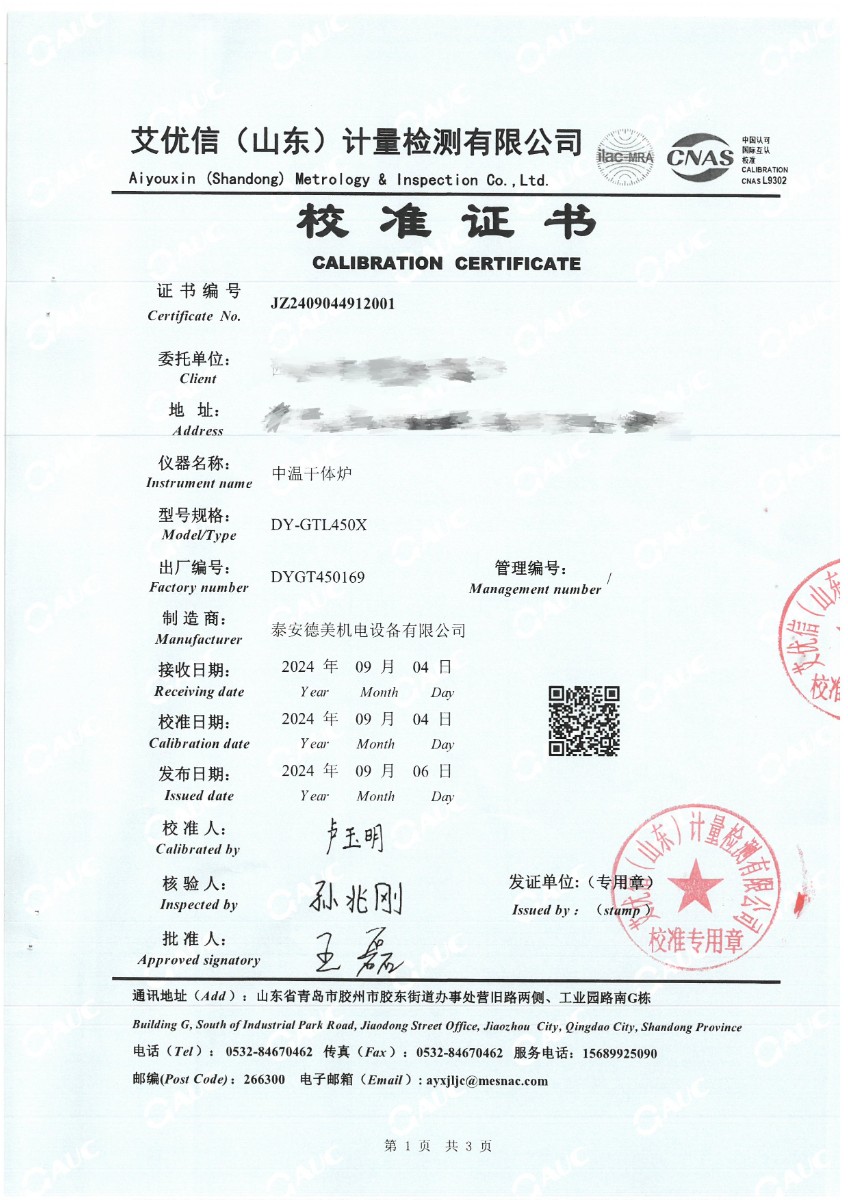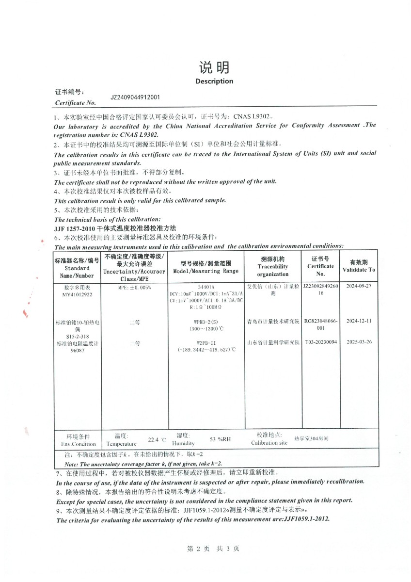 上一條:高溫干體(300~1200℃)校準(zhǔn)證書 | 下一條:超低溫面源黑體爐(-40-80℃)校準(zhǔn)證書 |