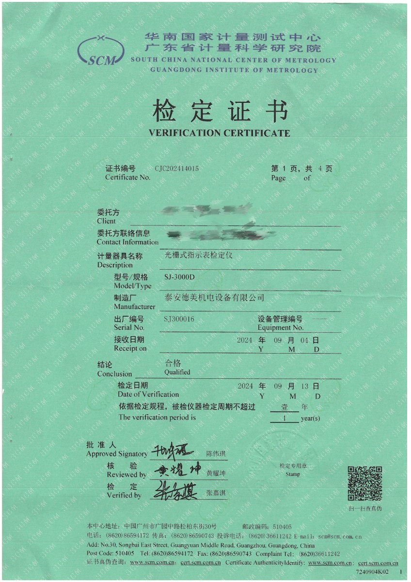 光柵式指示表檢定儀檢定證書 2024-9-20 本文被閱讀 6065 次