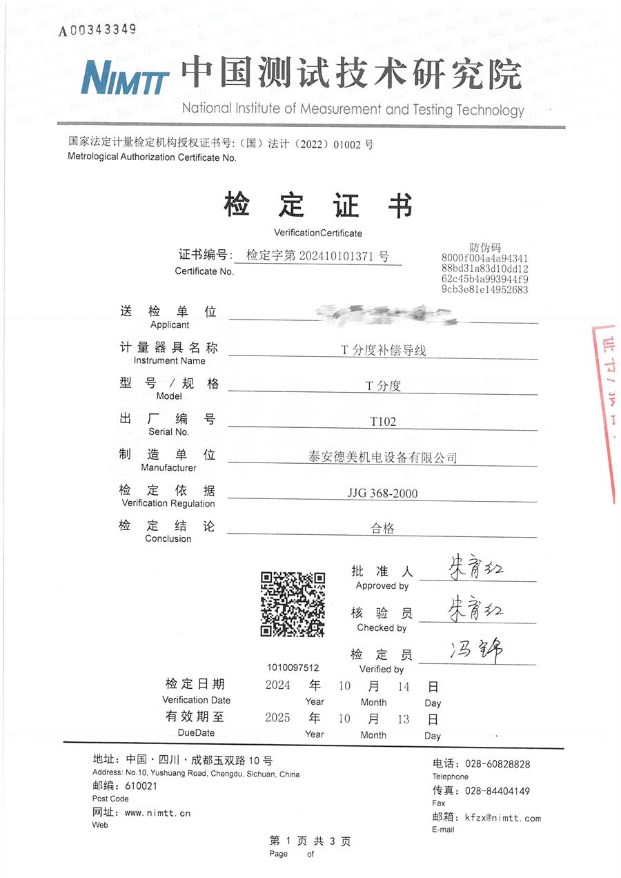 T分度補償導(dǎo)線檢定證書 2024-10-17 本文被閱讀 6067 次