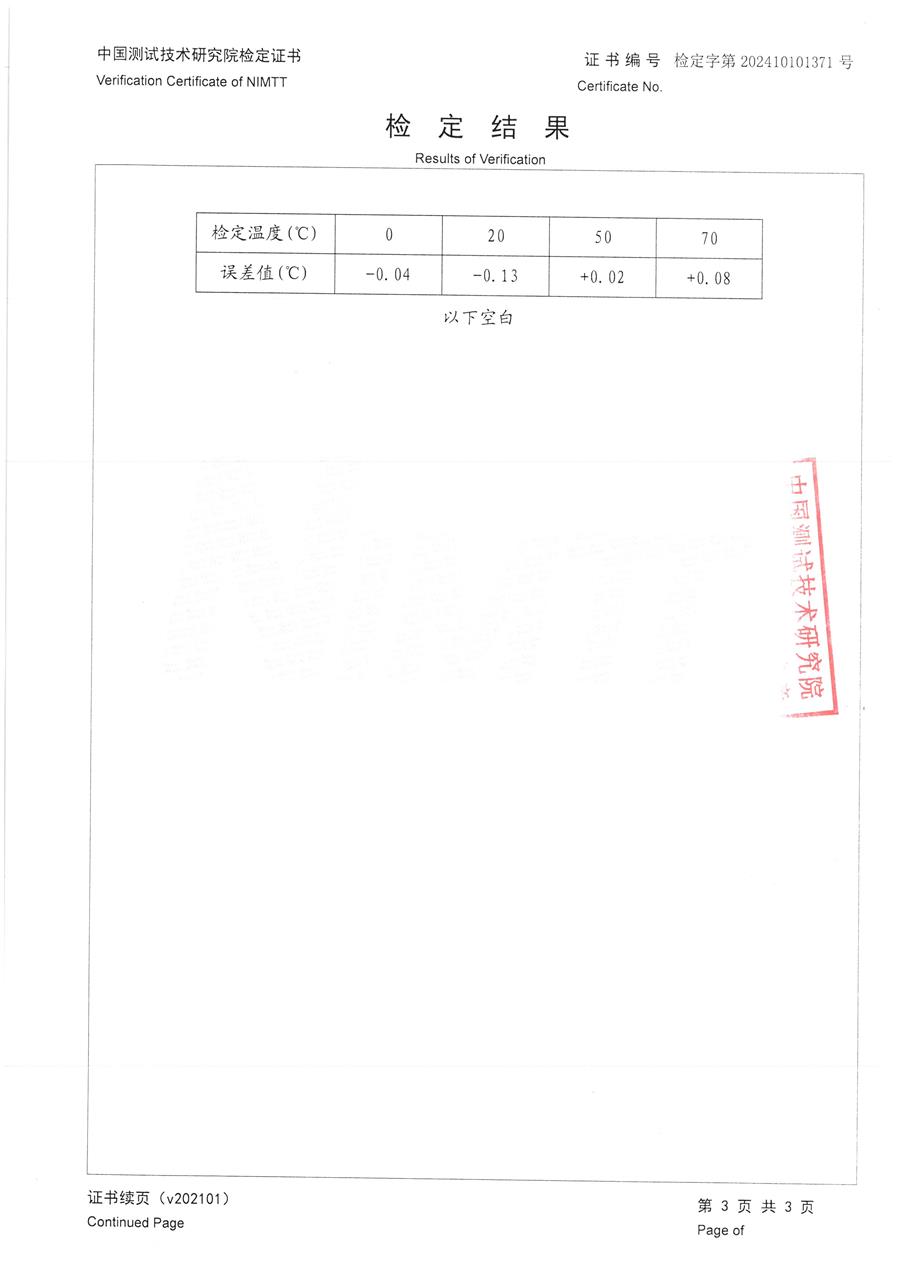 上一條:面源黑體爐(室溫+5-300℃)校準證書下一條:超低溫面源黑體爐(-40-80℃)校準證書