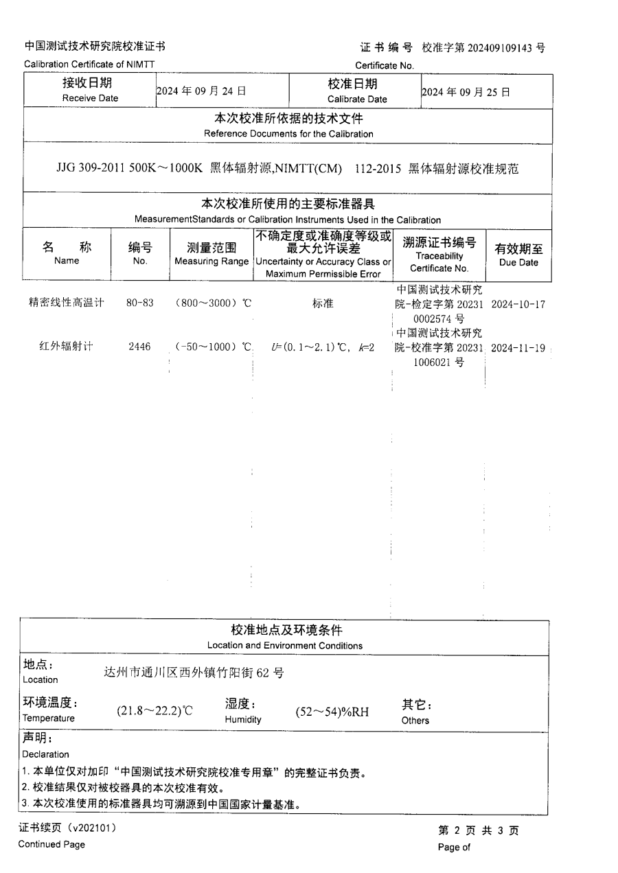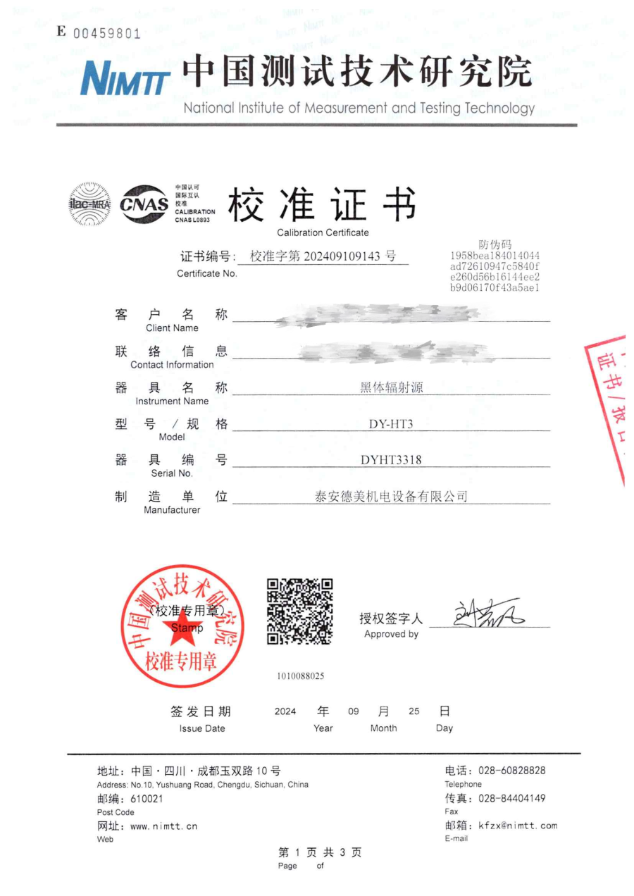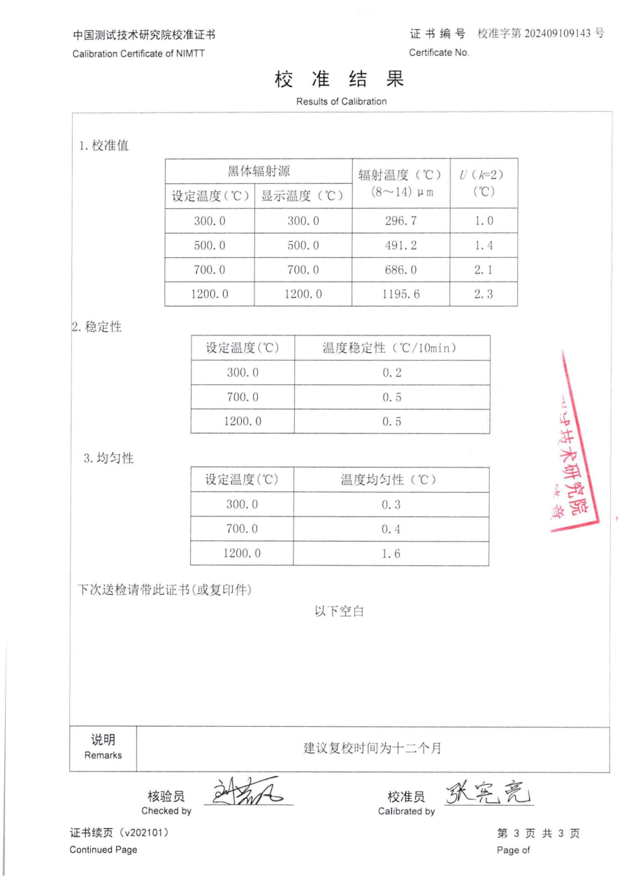 高溫腔式黑體校準(zhǔn)證書 2024-10-21 本文被閱讀 6814 次