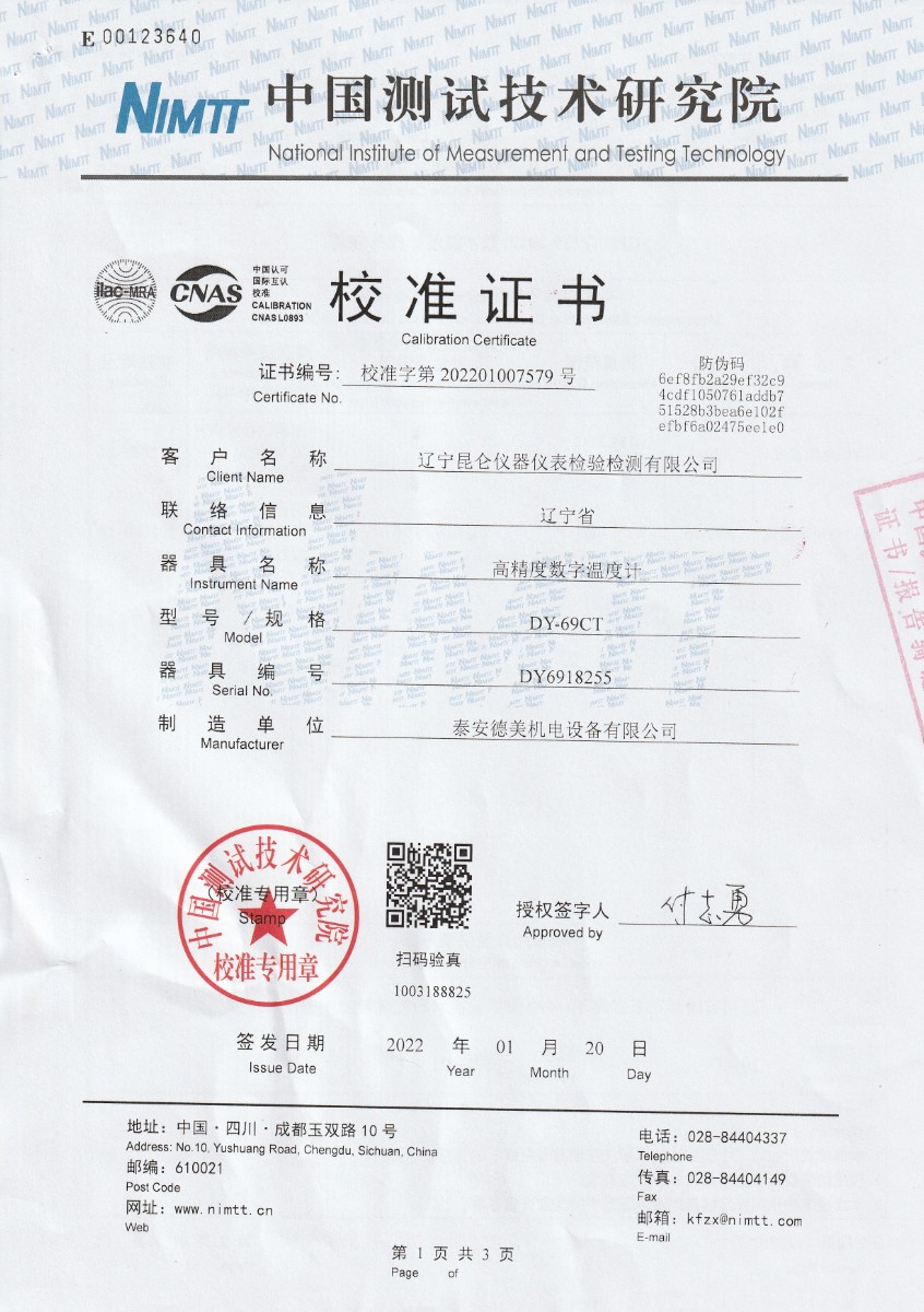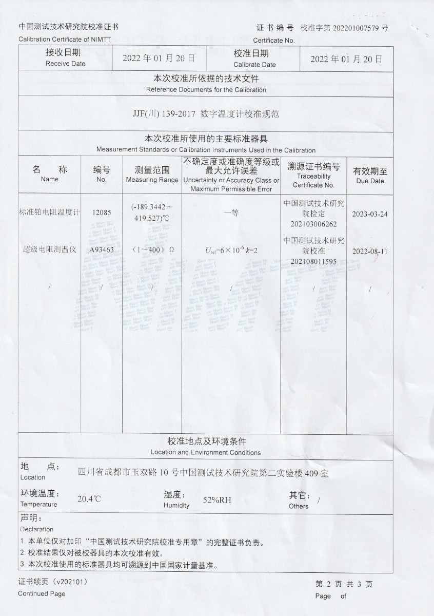 | 上一條:企業(yè)證書 | 下一條:便攜式干體爐(-30-150℃)校準(zhǔn)證書 |