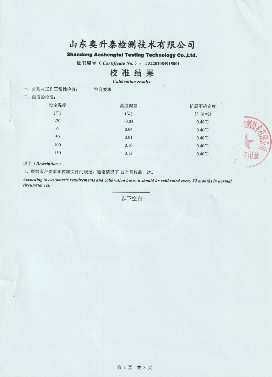 | 上一條:遼寧昆侖儀器儀表檢驗檢測有限公司-高精度數(shù)字溫度計 | 下一條:便攜式干體爐(-30-150℃)校準(zhǔn)證書 |