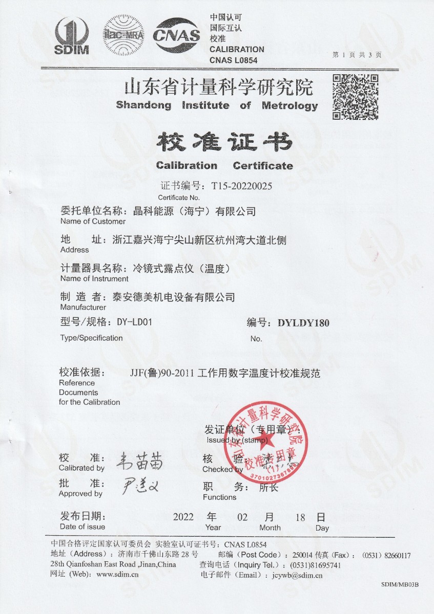 | 上一條:河北京車(chē)軌道交通車(chē)輛裝備有限公司-冷鏡式露點(diǎn)儀檢定證書(shū) | 下一條:便攜式干體爐(-30-150℃)校準(zhǔn)證書(shū) |