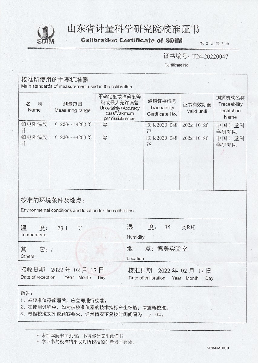上一條:河北京車軌道交通車輛裝備有限公司-熱電偶補償導(dǎo)線 | 下一條:便攜式干體爐(-30-150℃)校準證書 |