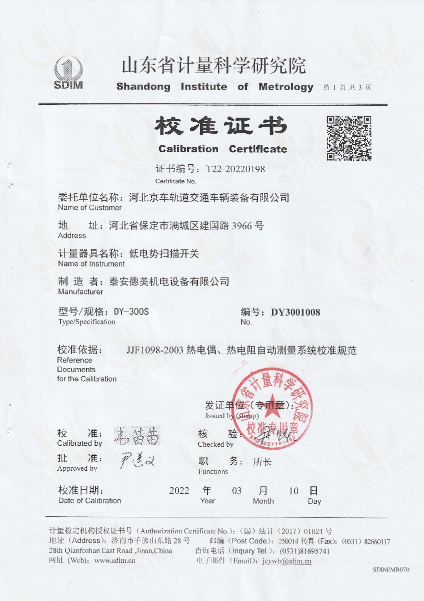 上一條:晶科能源(海寧)有限公司-數(shù)字壓力計校驗儀 | 下一條:超低溫面源黑體爐(-40-80℃)校準證書 |