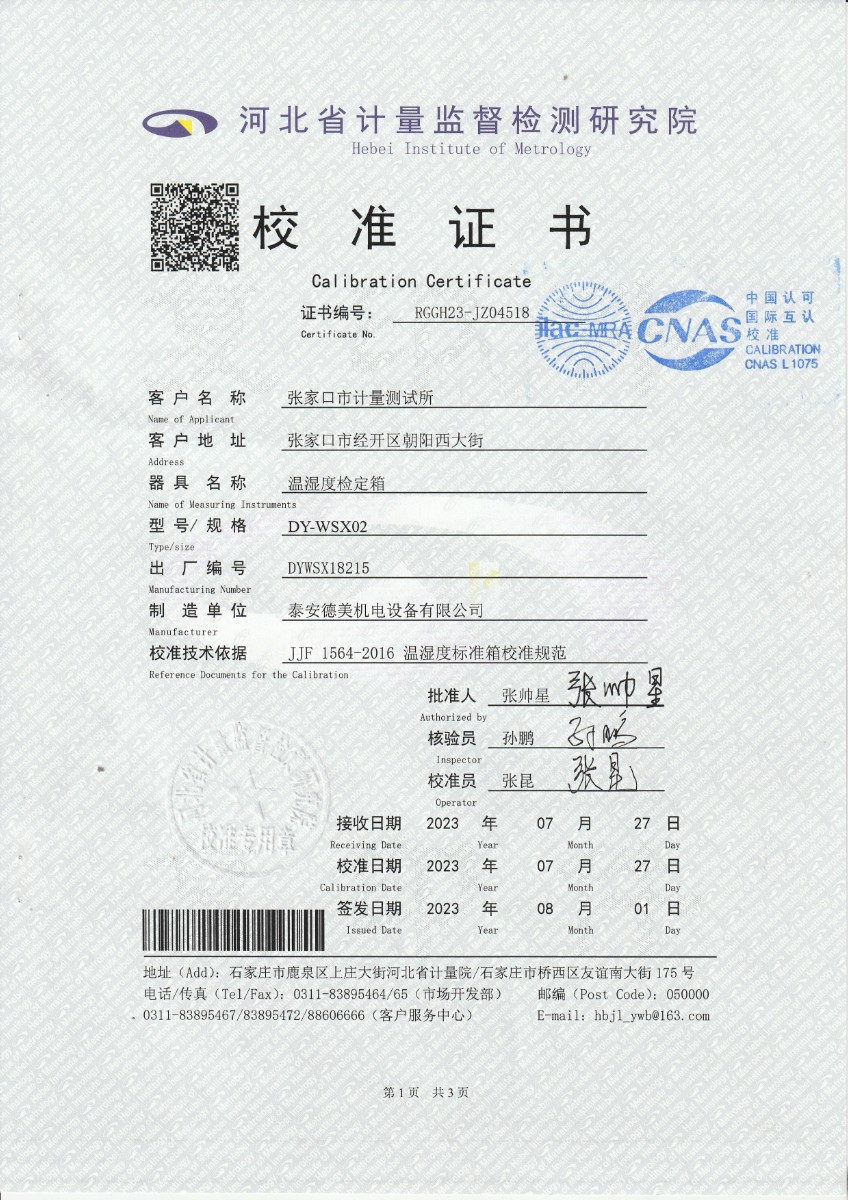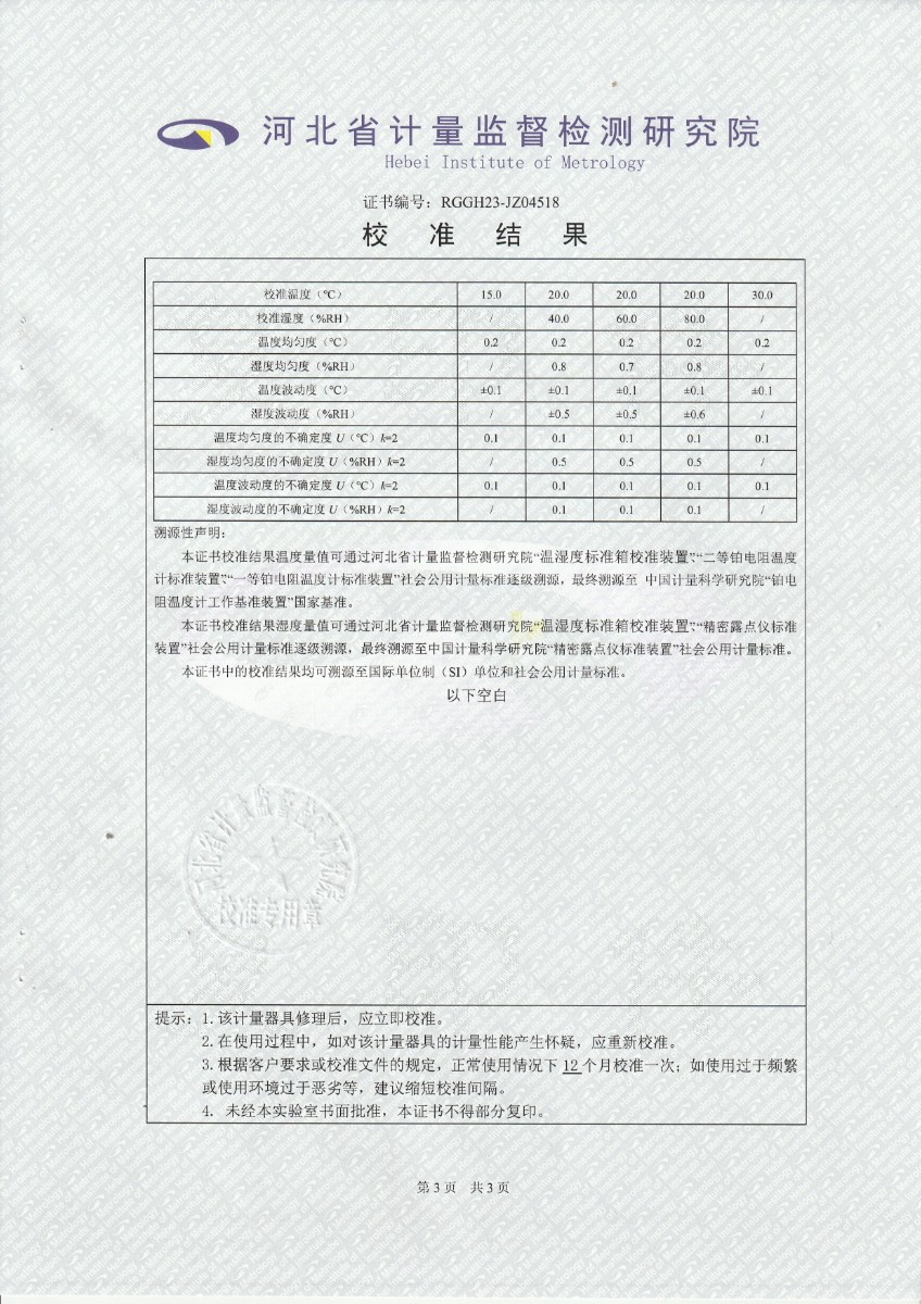 上一條:聞泰通訊股份有限公司-溫濕度檢定箱 | 下一條:超低溫面源黑體爐(-40-80℃)校準(zhǔn)證書 |