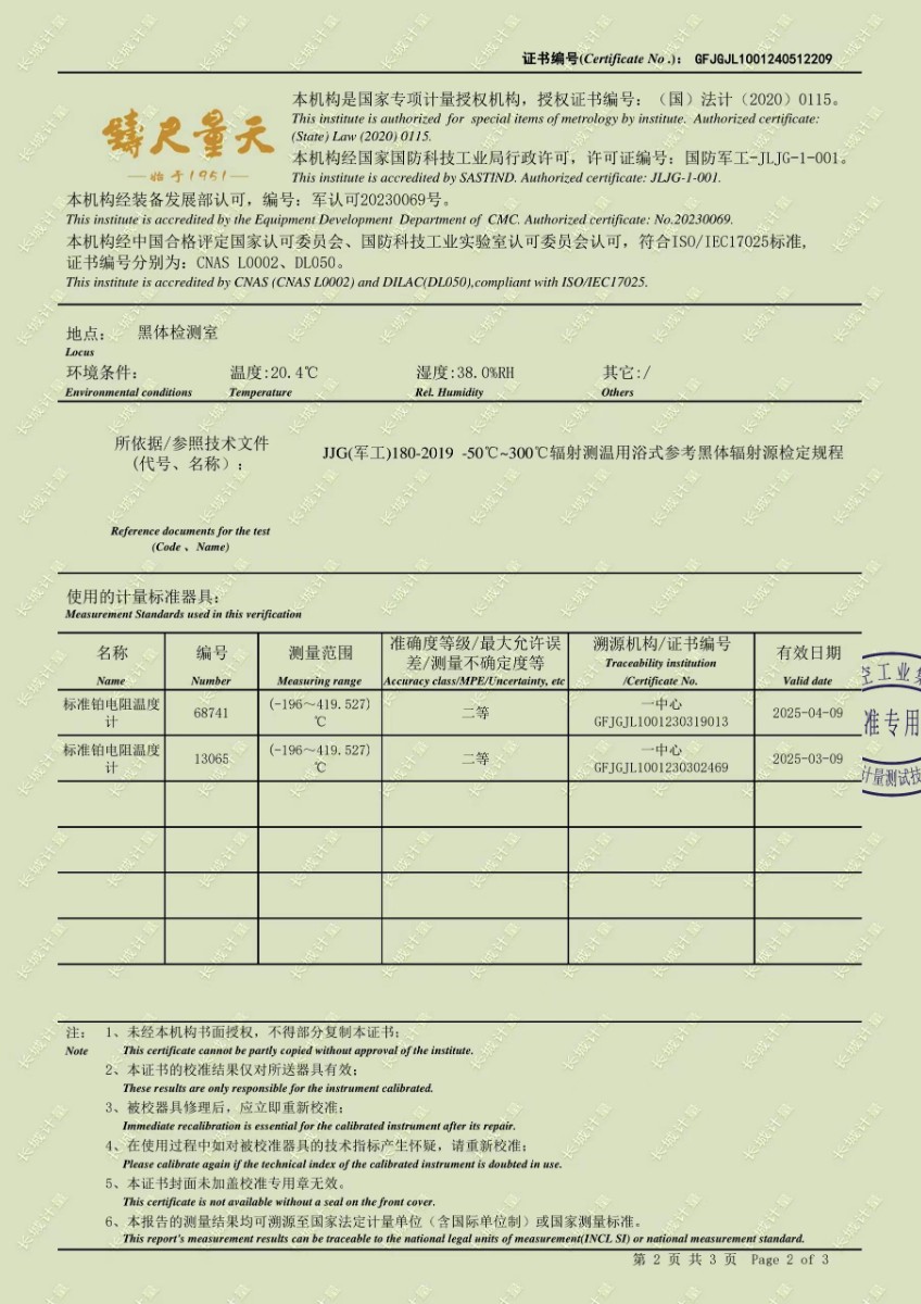 上一條:高精度低溫黑體241校準(zhǔn)證書下一條:超低溫面源黑體爐(-40-80℃)校準(zhǔn)證書