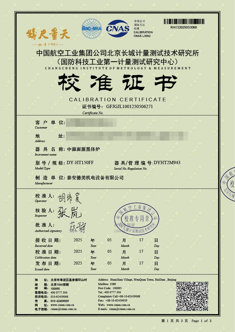 上一條:浴式黑體輻射源(-30-80℃)校準(zhǔn)證書 | 下一條:超低溫面源黑體爐(-40-80℃)校準(zhǔn)證書 |