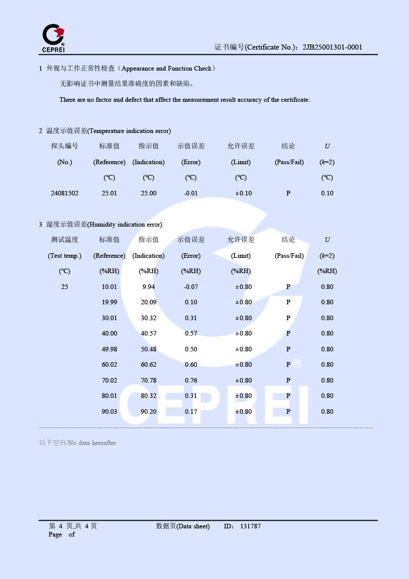 上一條:中溫面源黑體爐(室溫+5-500℃)校準(zhǔn)證書 | 下一條:超低溫面源黑體爐(-40-80℃)校準(zhǔn)證書 |