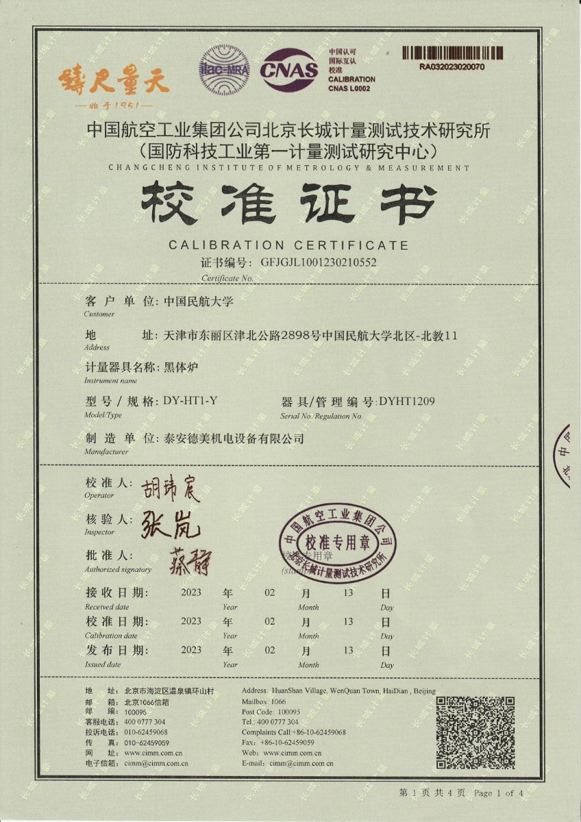 上一條:煙臺(tái)信泰檢測(cè)技術(shù)服務(wù)有限公司 黑體爐 校準(zhǔn)證書(shū) | 下一條:便攜式干體爐(-30-150℃)校準(zhǔn)證書(shū) |