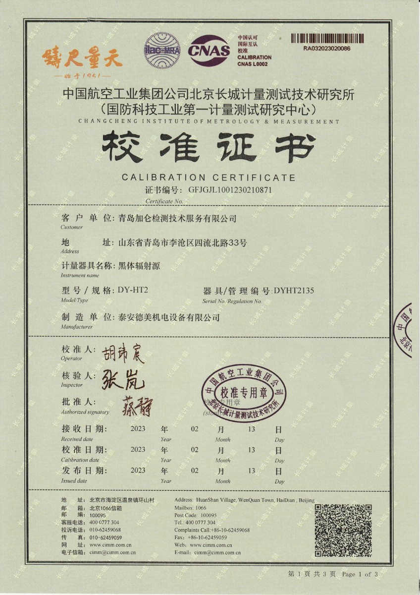 上一條:中國(guó)民航大學(xué) 黑體爐 校準(zhǔn)證書(shū) | 下一條:便攜式干體爐(-30-150℃)校準(zhǔn)證書(shū) |