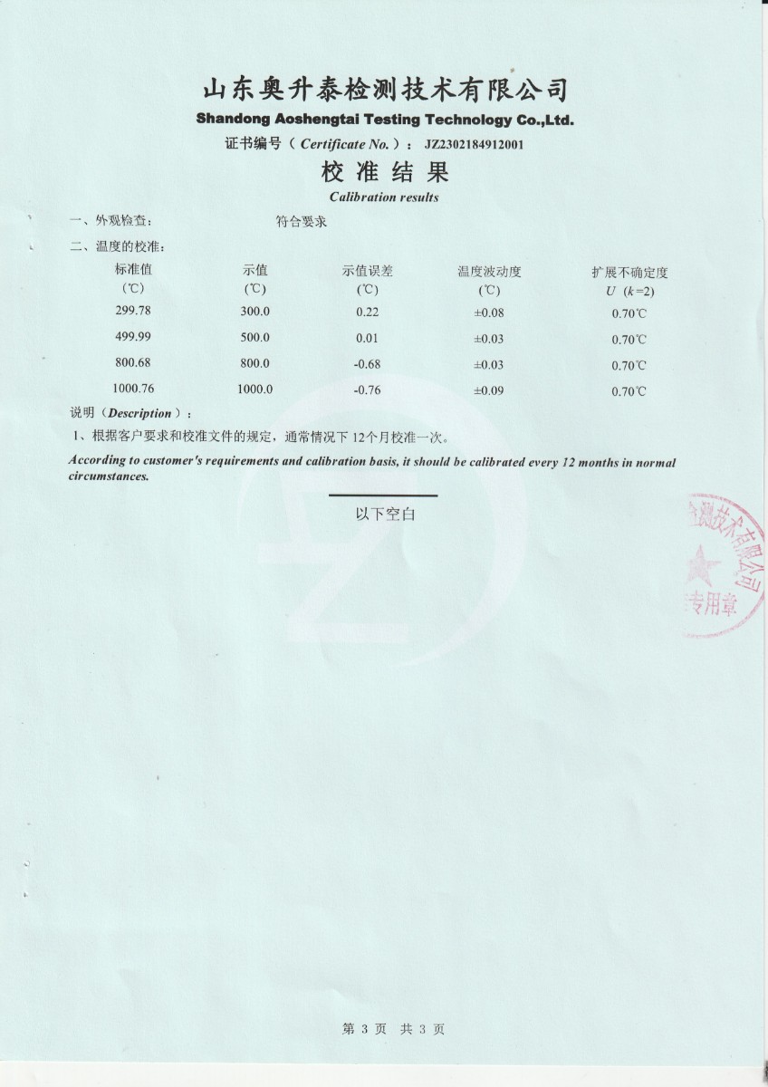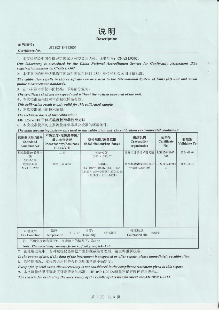 上一條:西安天元航空科技股份有限公司 零點恒溫器 校準證書 | 下一條:超低溫面源黑體爐(-40-80℃)校準證書 |